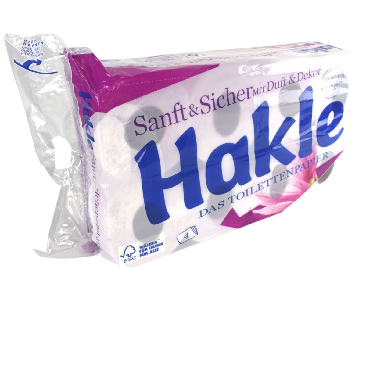 Hakle Toilettenpapier mit Duft und Dekor in klassischem Weiß mit Prägung. 8 Rollen á 130 Blatt 4-lagig.