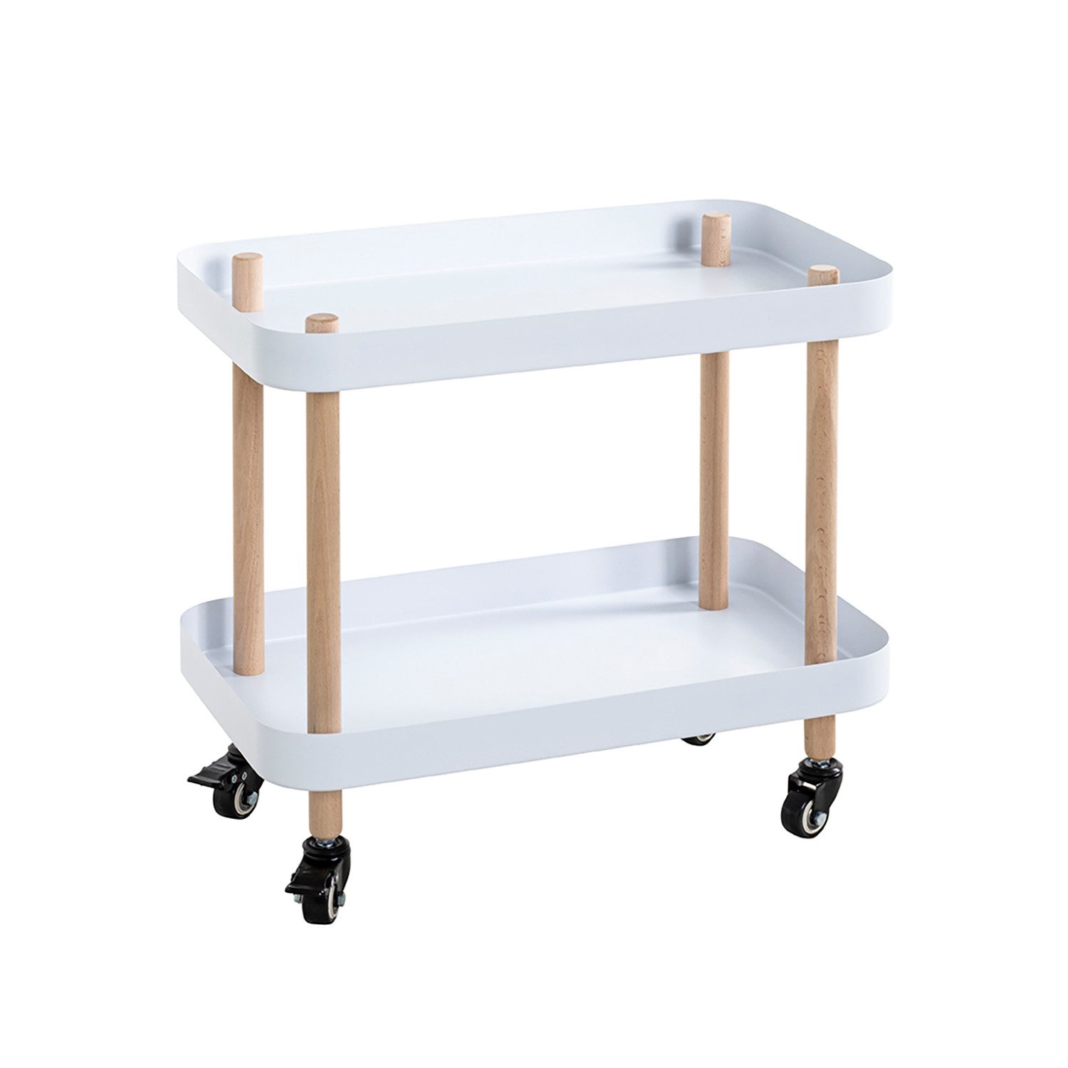Der HAKU Möbel Beistelltisch auf Rollen Levin 2 kombiniert Massivholz und pulverbeschichtetes Metall in natur und weiß für ein stilvolles Design.