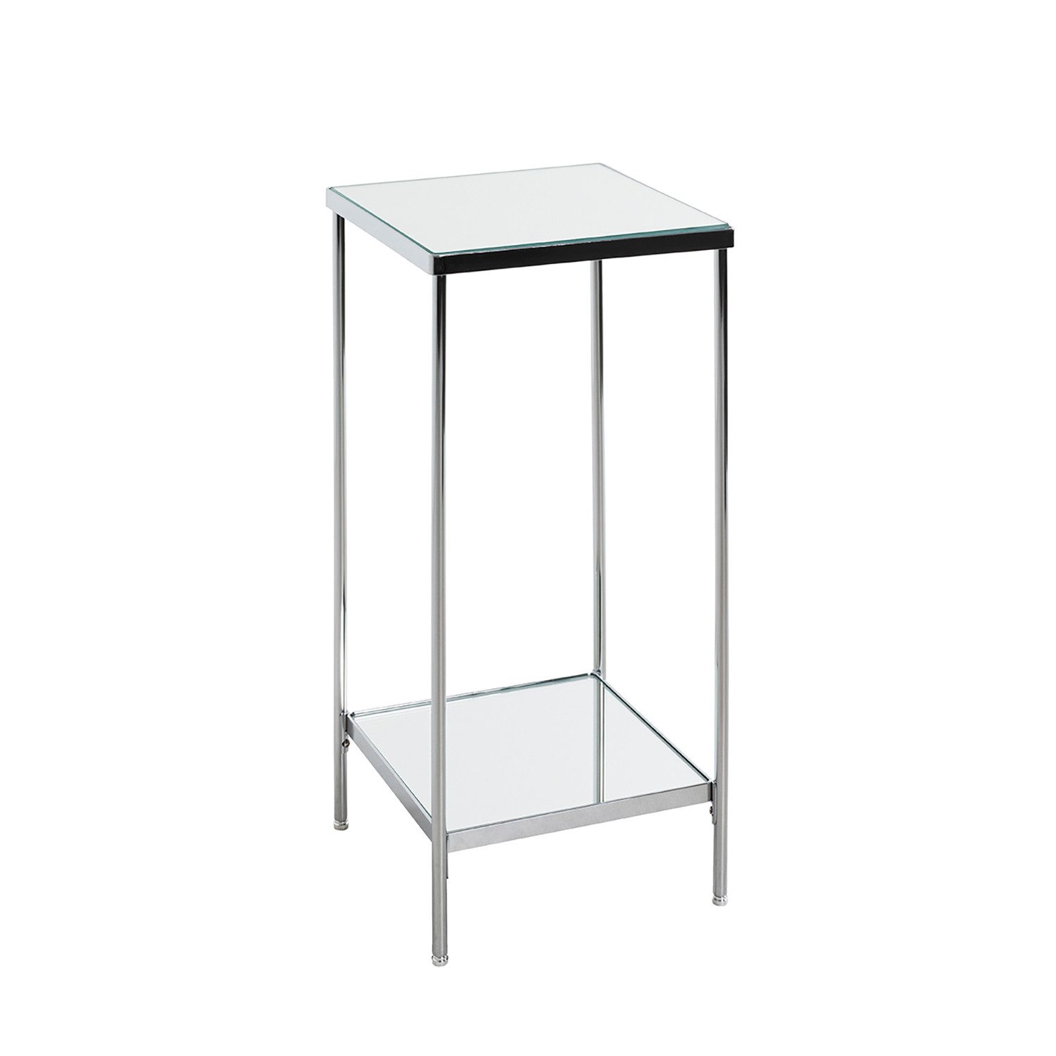 Eigenschaften | aus Stahlrohr in chrom, Rahmen aus Flachstahl in chrom, Ablagen aus Spiegelglas |