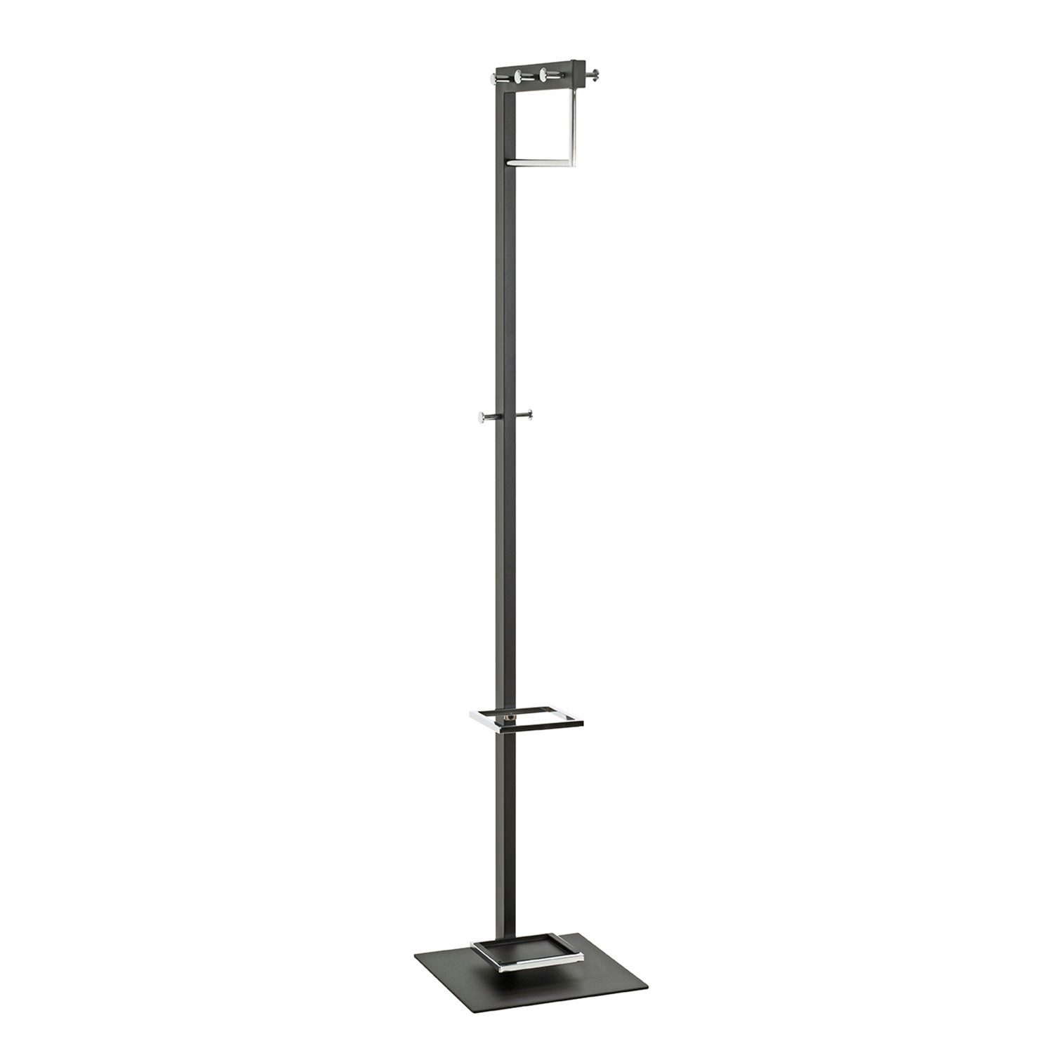Der Garderobenständer Hunter von HAKU Möbel besticht durch sein elegantes Design aus pulverbeschichtetem Stahlrohr in Schwarz und verchromten Metallakzenten.