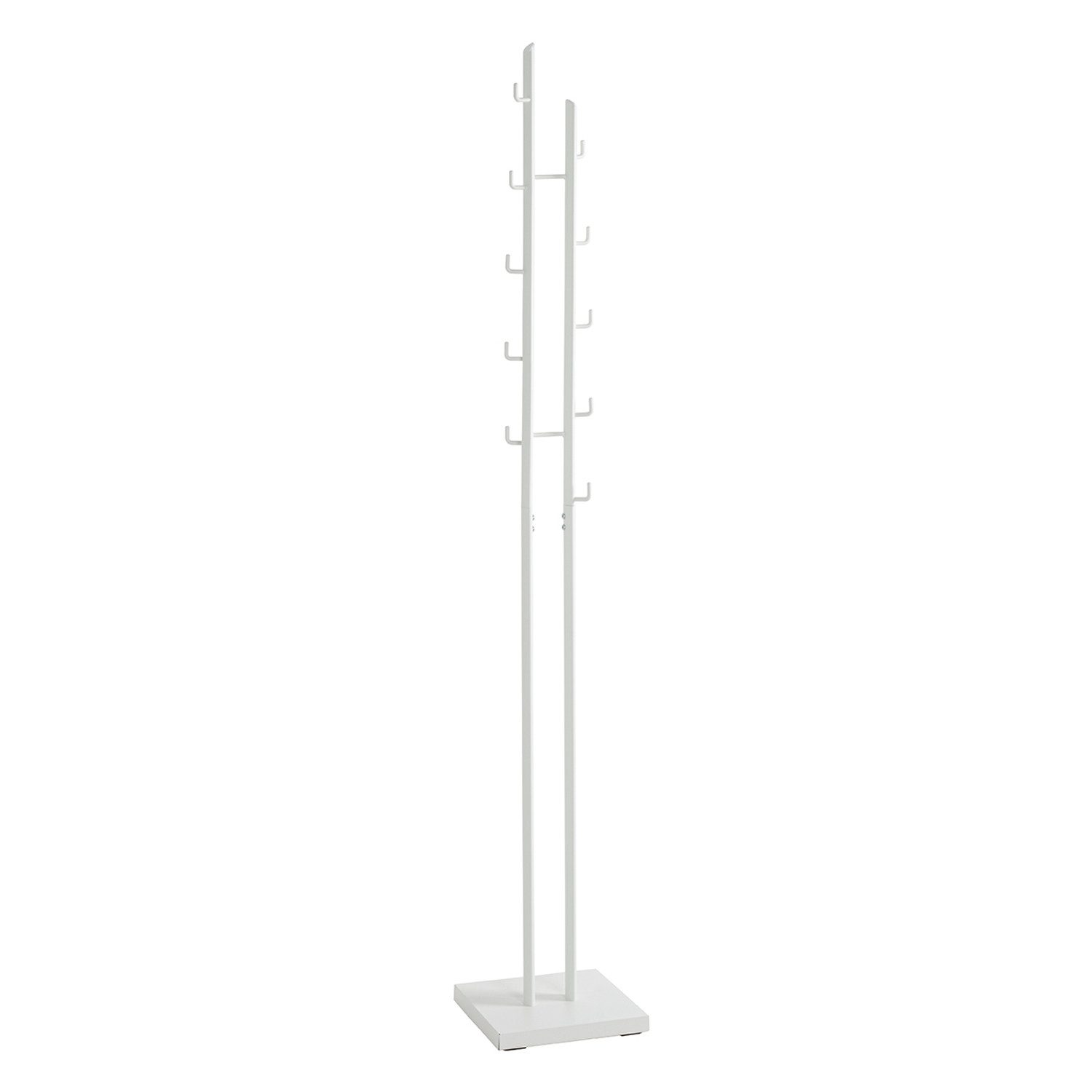 Aus Stahlrohr in weiß matt pulverbeschichtet, verfügt der Garderobenständer über 8 stabile Haken, die jeweils bis zu 5 kg tragen können.