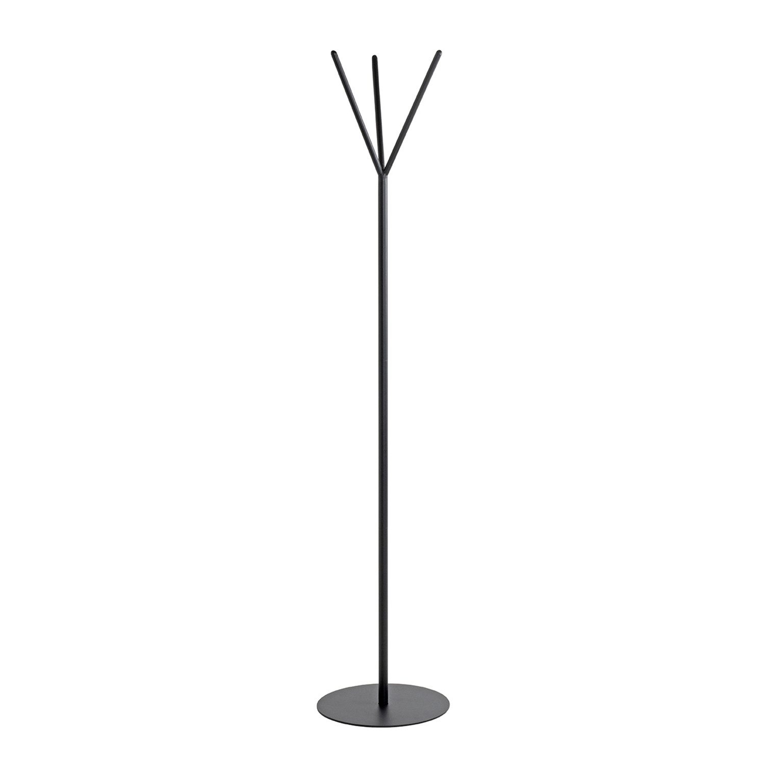 Der Garderobenständer Simon von HAKU Möbel besticht durch sein robustes Design aus pulverbeschichtetem Stahlrohr in elegantem Schwarz.