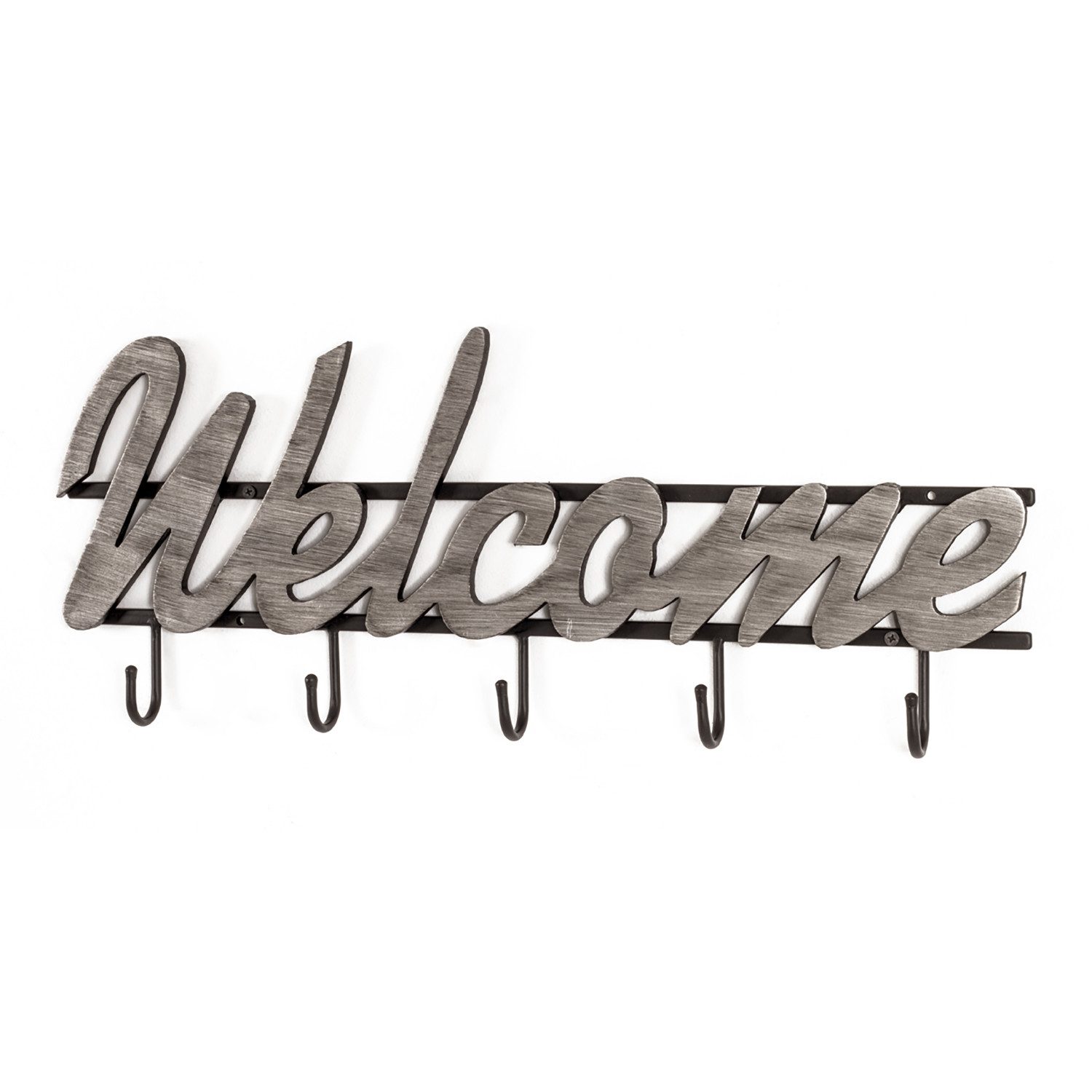 Der schwarze Metallrahmen und der silberne MDF-Schriftzug der Welcome 18 Wandgarderobe von HAKU Möbel bieten eine elegante Optik für jeden Eingangsbereich.