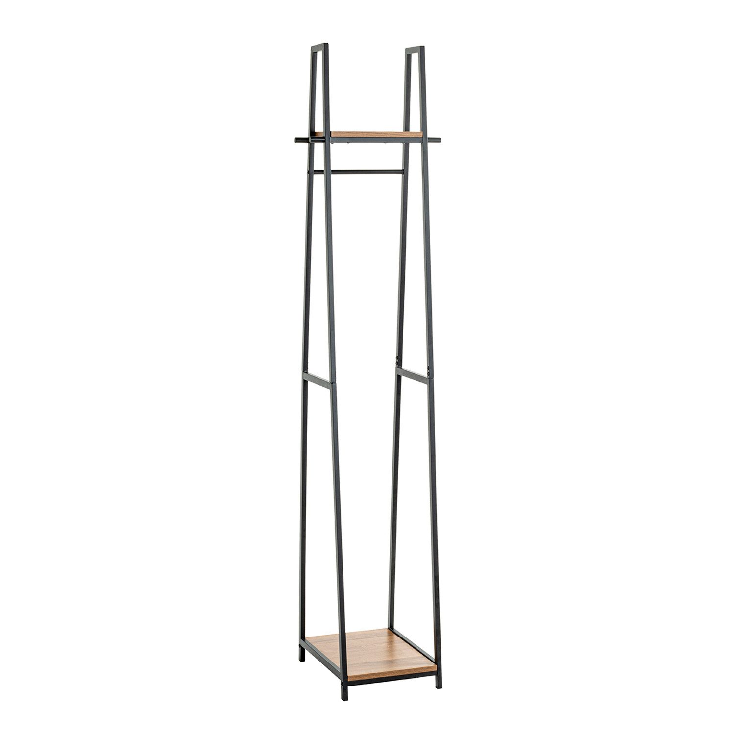 Die Standgarderobe Pescara 2 von HAKU Möbel kombiniert MDF und Metall in Eiche und Schwarz für ein stilvolles Design, ideal für moderne Wohnräume.
