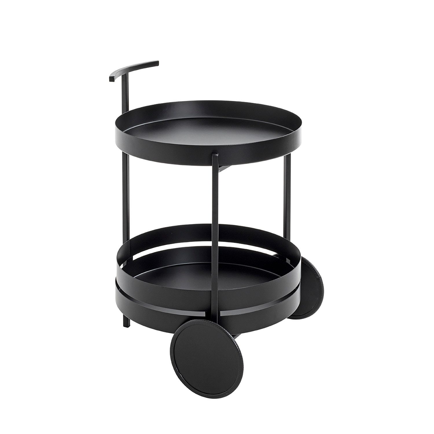 Der HAKU Möbel Servierwagen Elena 2 besticht durch sein elegantes Design aus matt schwarz lackiertem Stahlrohr und bietet zwei praktische Ablagen.