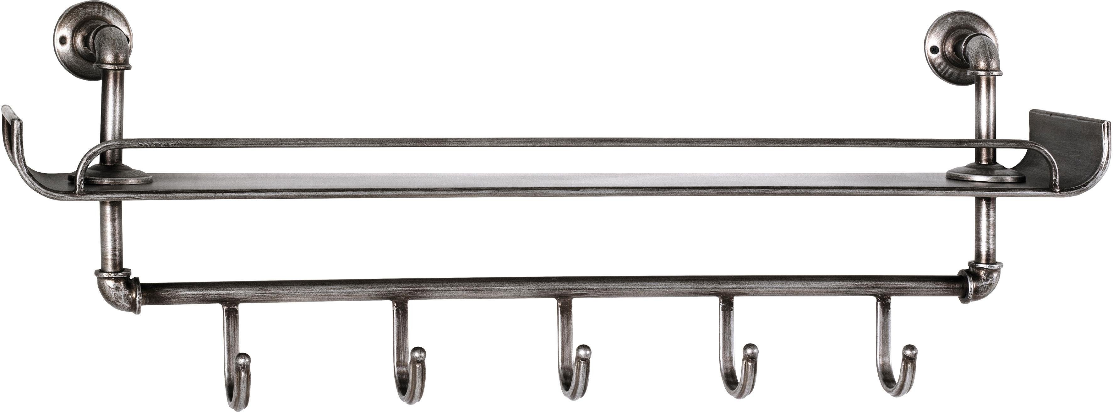 Industrial-Look für den heimischen Eingangsbereich: Die Wandgarderobe mit Ablage von HAKU überzeugt durch ein Metalldesign, das aus Rohrverbindungen, dezenten Garderobenhaken und einer Ablagefläche mit rundgeknickten Kanten besteht. Optisch fügt sich das Dielenmöbel in nahezu jedes Raumkonzept ein, da es gut mit anderen Farben und Möbeln harmoniert. Aufhängen lassen sich Jacken, Mäntel und Schals. Gleichzeitig verfügt die Garderobe über eine zusätzliche Ablagefläche, um Schlüssel, Hüte oder Dekorationen zu platzieren. Die Haken bestehen aus Metall, ebenso die einzelnen Bestandteile des Gestells. Die Wandgarderobe mit Ablage von HAKU dient im Flur als Blickfang.