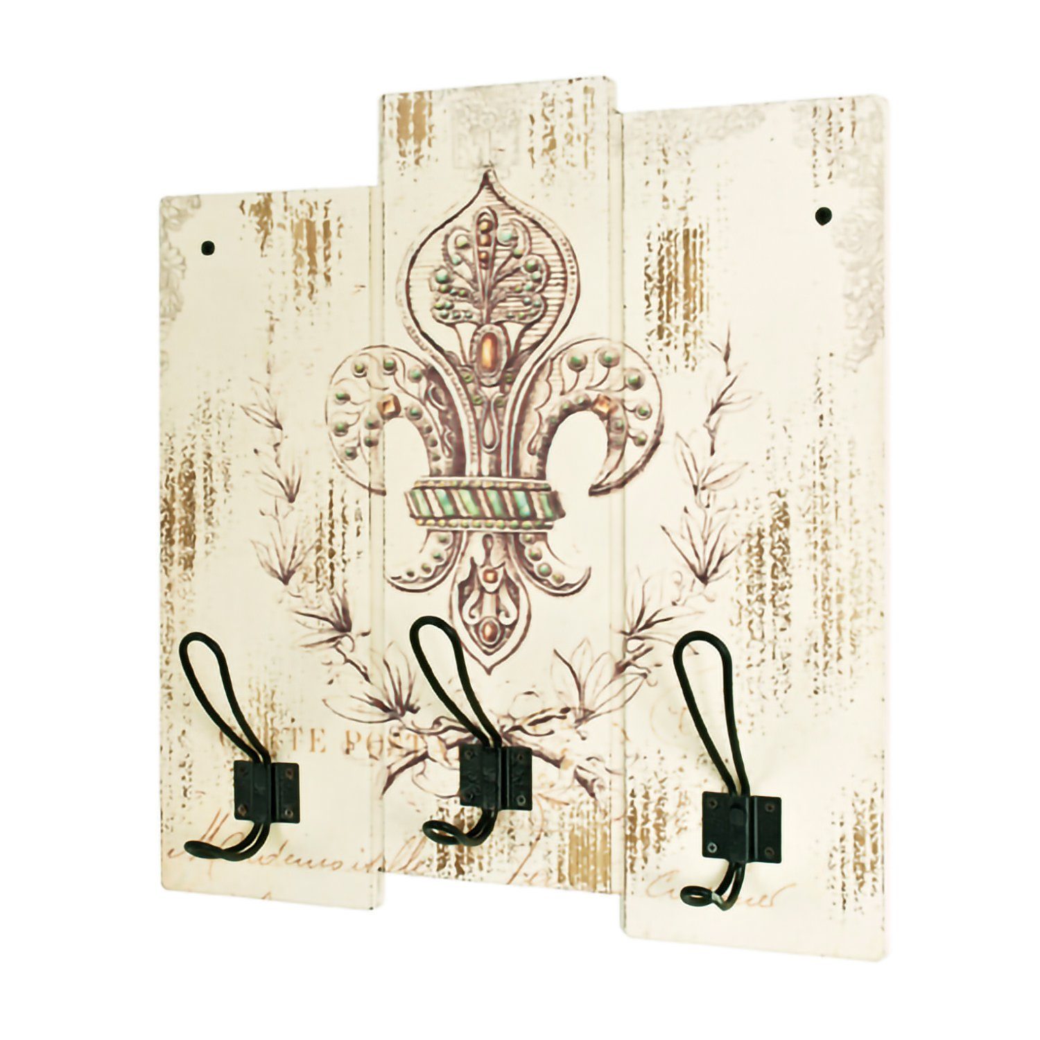 Wandgarderobe aus Massivholz in Vintageoptik "Motiv Ornament", mit 3 Garderobenhaken aus Metall