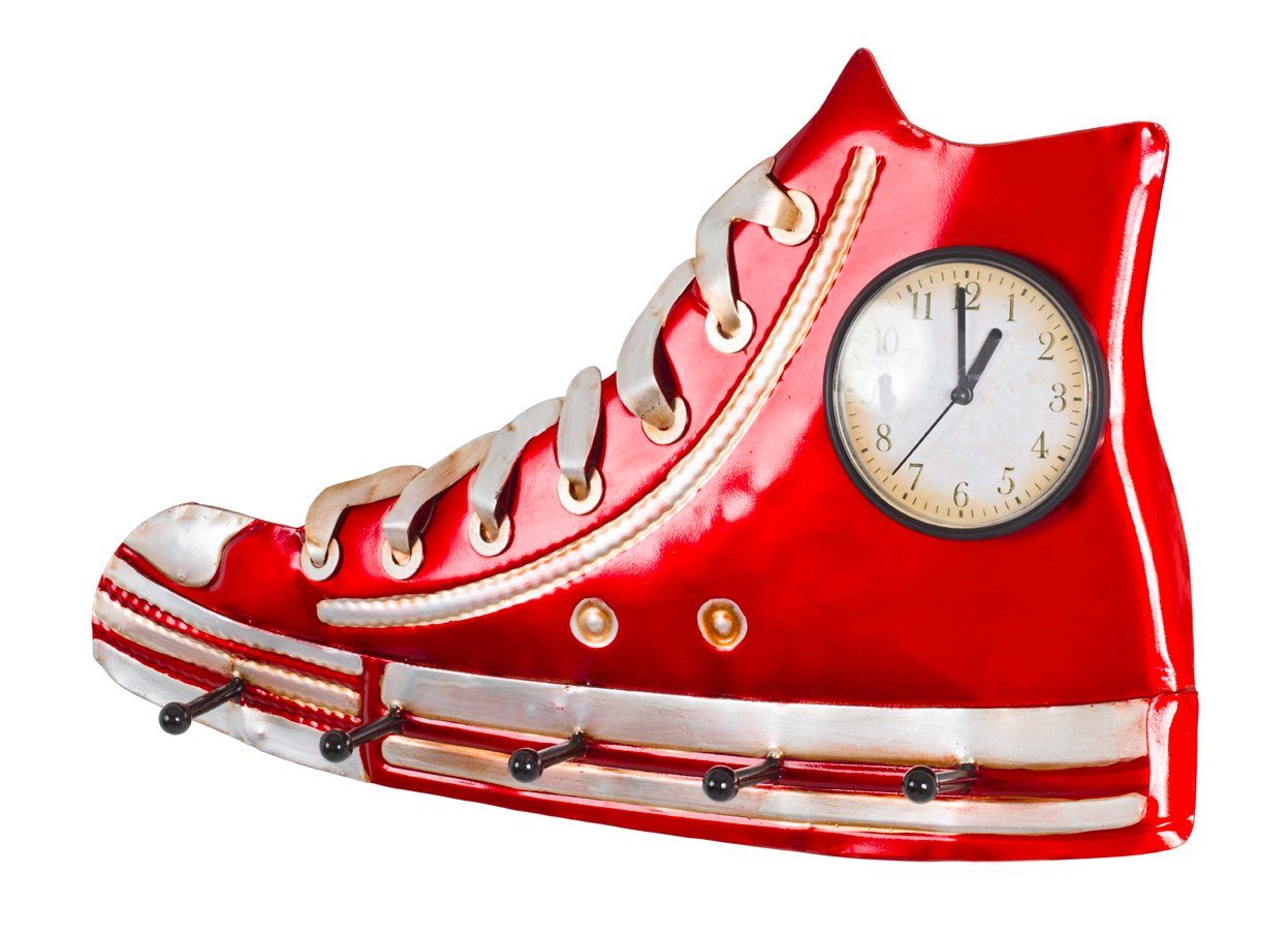 Wandgarderobe aus Metall in 3D Optik rot lackiert, mit 5 Garderobenhaken und integrierter Uhr, montiert