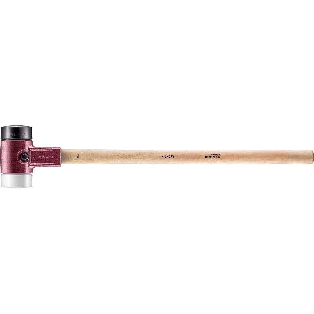 SIMPLEX-Vorschlaghammer in der Einsatzkombination Gummikomposition (schwarz, mittelhart, dämpfend, geruchsneutral, verschleißarm) / Superplastik (weiß, mittelhart, sehr widerstandsfähig).