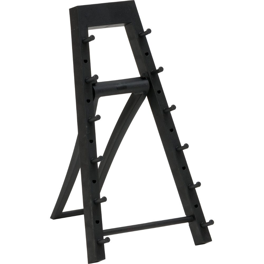 Messerständer aus Kunststoff, auf welchem sowohl Taschenmesser, als auch feststehende Messer präsentiert werden können. Mit verstellbaren Auflagen für bis zu 6 Messer.