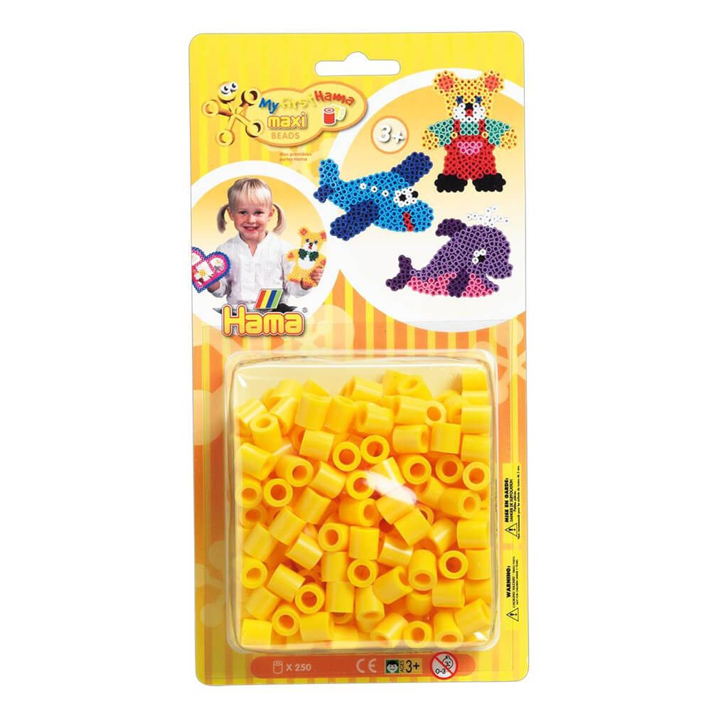 Bügelperlen sind ein idealer Zeitvertreib, welcher die Kreativität und die Feinmotorik fördert. Das schöne daran ist, dass es zu jeder Jahreszeit passende Stiftplattenmotive gibt. Ein Beutelinhalt von Hama beinhaltet 250 Maxi- Bügelperlen gelb. Achtung: Nur unter Aufsicht eines Erwachsenen verwenden!
