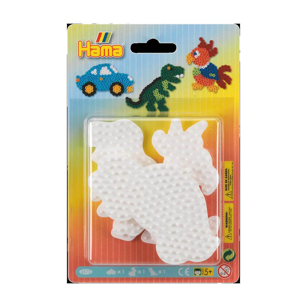 HAMA Bügelperlen bereiten jeder Altersgruppe großen Spaß und fördern die Kreativität durch das Legen neuer Bilder. Dank der unterschiedlichen Größen lassen sich sowohl riesige, als auch detaillierte Muster setzen. In diesem Midi Stiftplatten-Set befinden sich 3 Stiftplatten, ihr Motiv ist ein Dino, ein Papagei und ein Auto.