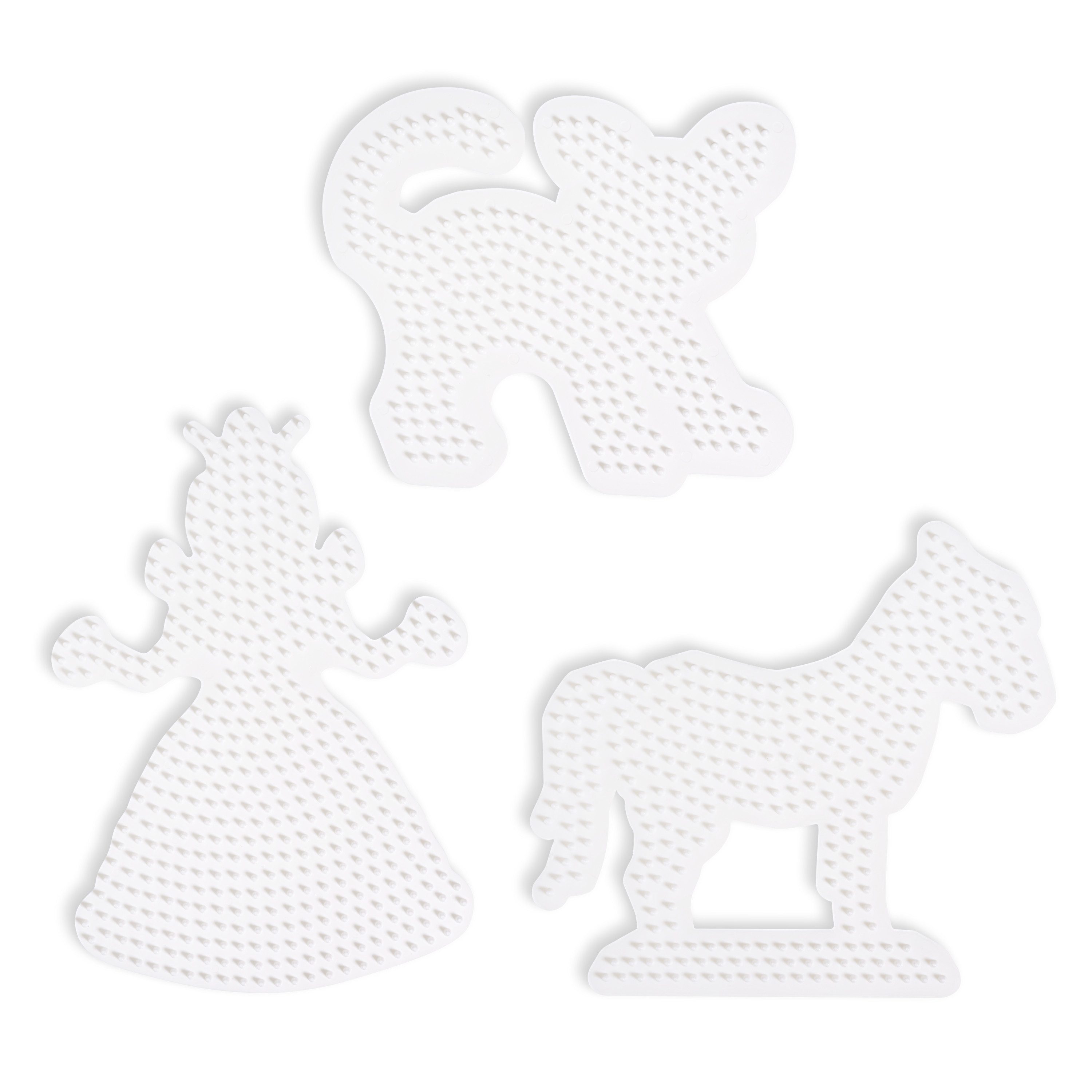 Hama-Stiftplatten 'Tiere und Prinzessin' im 3er-Set mit den Motiven Pferd, Katze und Prinzessin. Einfach Hama-Perlen nach Belieben aufstecken, das fertige Motiv mit einer Bügelfolie abdecken und mit dem Bügeleisen verschmelzen. Prima Bastelspaß für Kinder in den Ferien oder an Kindergeburtstagen. Aus Kunststoff.