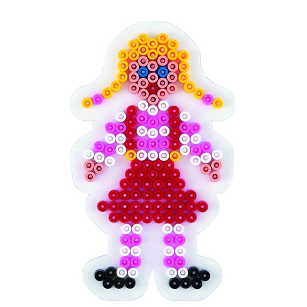 Die Bügelperlen gibt es in unzähligen Farben. Durch viele Farbnuancen lassen sich detailierte Bilder und Muster legen. Achten Sie bei Ihrem Kauf darauf, dass die Размер der Bügelperlen mit der Размер der Stiftplatte zusammenpasst. Die Stiftplatte in weiß im Mädchen-Motiv ist für Midi-Perlen geeignet.
