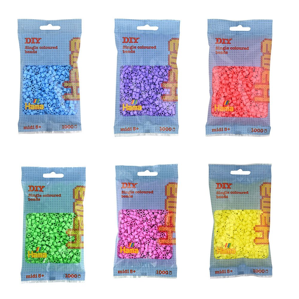 HAMA Bügelperlen bereiten jeder Altersgruppe großen Spaß und fördern die Kreativität durch das Legen neuer Bilder. Dank der unterschiedlichen Größen lassen sich sowohl riesige, als auch detaillierte Muster setzen. Das HAMA-Set beinhaltet 6000 Bügelperlen: Pastell Farben (6 Tüten je 1000). Mit den pastellfarbenen Bügelperlen kann man beeindruckende Bilder und Kunstwerke schaffen. Achtung: Nur unter Aufsicht eines Erwachsenen verwenden!