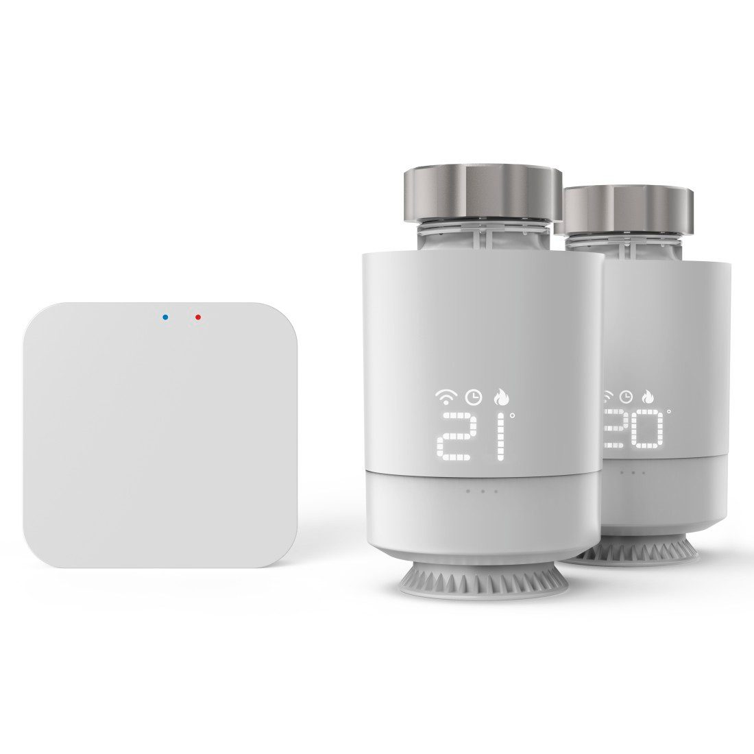 Lieferumfang: 1 Smart-Home-Heizkörperthermostat, 1 Zentrale, 1 Netzteil, 1 Micro-USB-Kabel, 4 Batterien AA Mignon, 2 Adapter-Sets, 1 Schnellstartanleitung, 1 Sicherheitshinweise