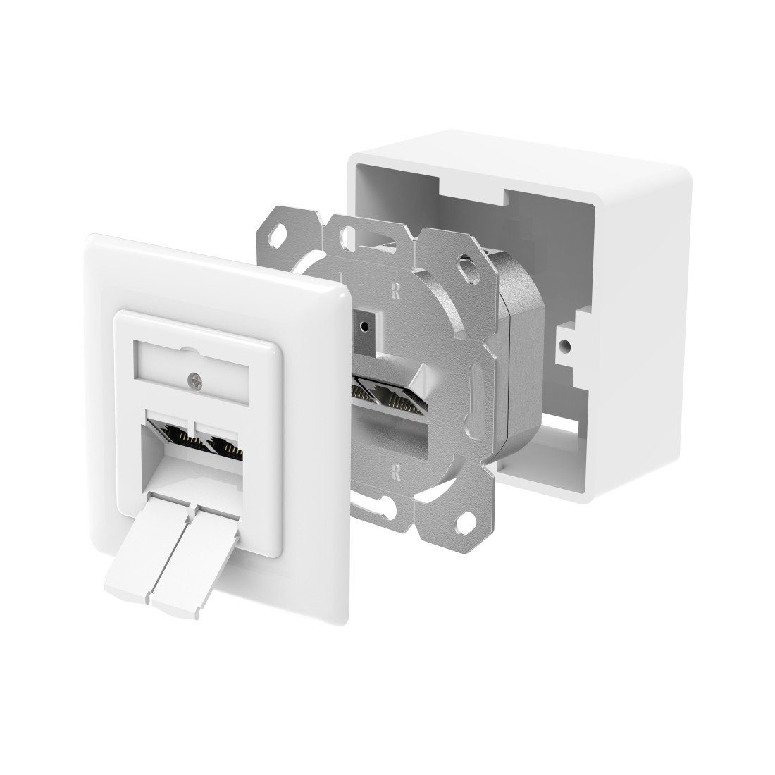Lieferumfang: Netzwerkdose, Abdeckplatte, Aufputzgehäuse, Kurzanleitung