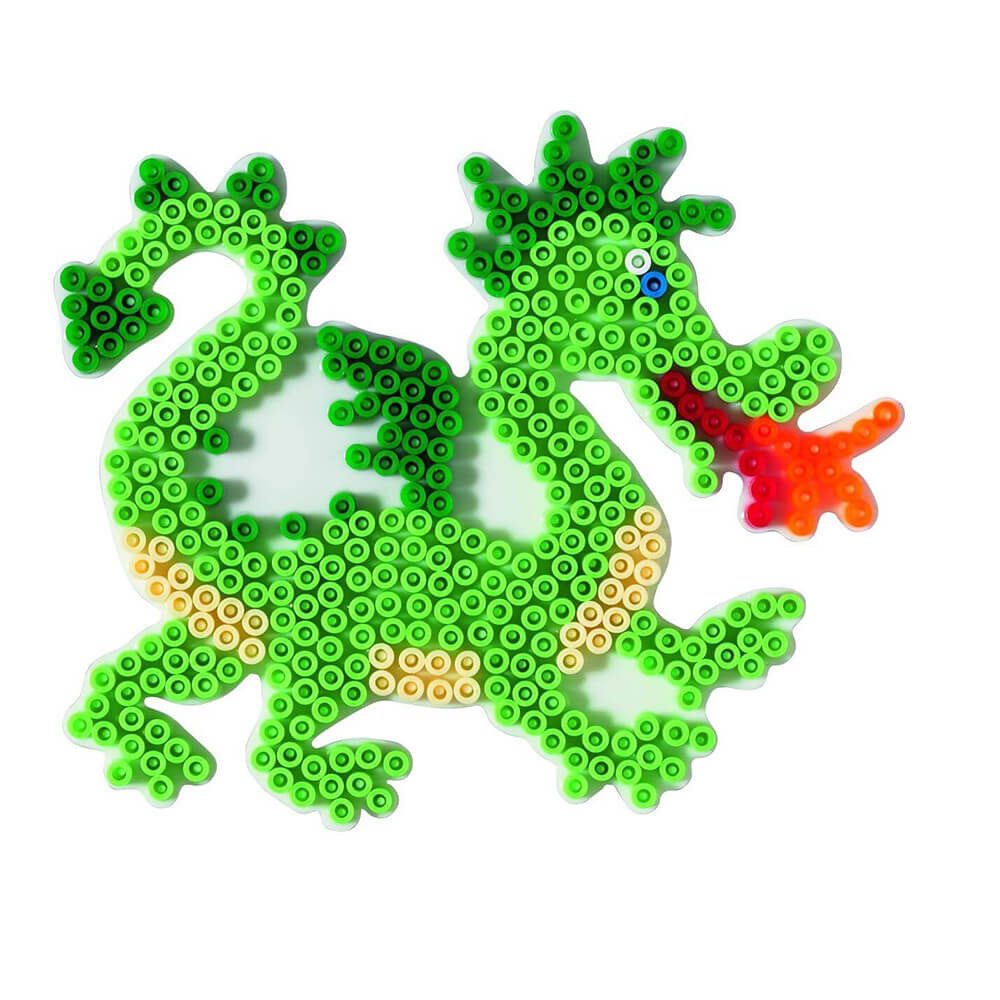 Die Bügelperlen gibt es in unzähligen Farben. Durch viele Farbnuancen lassen sich detailierte Bilder und Muster legen. Achten Sie bei Ihrem Kauf darauf, dass die Размер der Bügelperlen mit der Размер der Stiftplatte zusammenpasst. Die Stifplatte von HAMA ist weiß und in From eines Drachen.