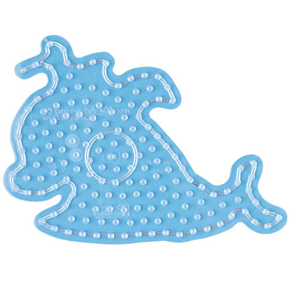 Die bunten Perlen lassen sich nach Vorlage oder ganz frei nach eigenen Vorstellungen auf die Stiftplatte stecken, wodurch farbenfrohe Motive oder sogar Mandalas entstehen. Der Fantasie sind durch die vielen verschiedenen Plattenmotive keine Grenzen gesetzt. Die Stiftplatte in transparent im Wal-Motiv ist für Maxi-Perlen geeignet.