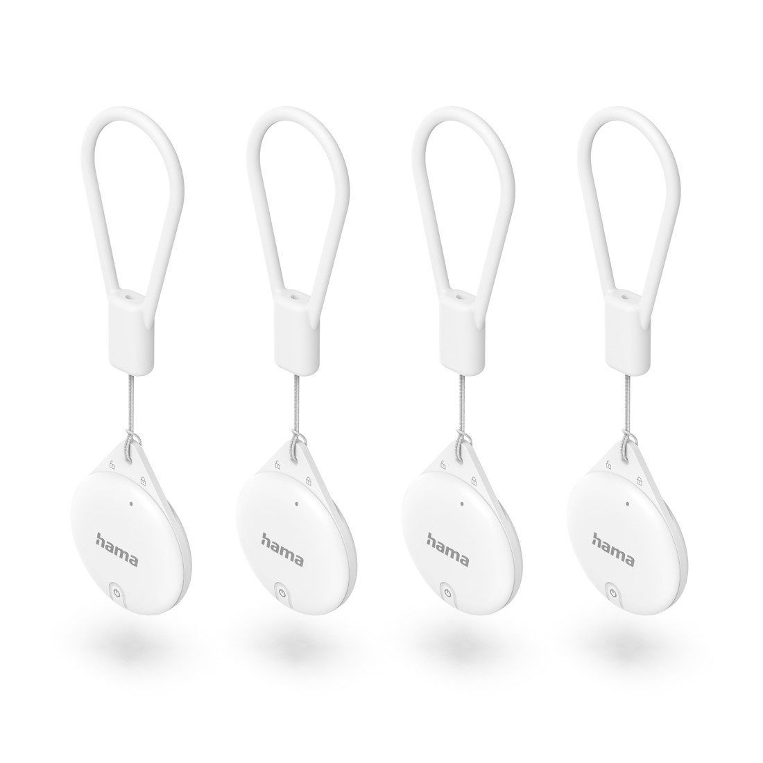 Lieferumfang: 4 Schlüsselfinder, 4 Schlaufen, 4 Knopfzellen CR2032 (austauschbar, hält ca. bis zu einem Jahr), 1 Kurzanleitung