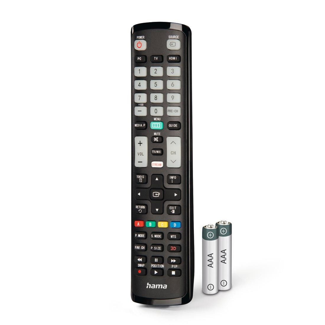 Lieferumfang: 1 Ersatzfernbedienung für Samsung, 2 Batterien AAA Micro, 1 Bedienungsanleitung mit Codeliste