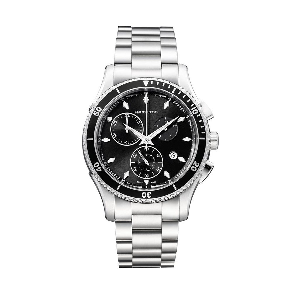 Der Hamilton Jazzmaster Seaview (Artikelnummer: H37512131) bietet mit seinem Edelstahlarmband und der Faltschließe einen hervorragenden Tragekomfort. Das Gehäuse mit einem Durchmesser von 44mm ist angenehm zu tragen und verleiht der Uhr eine sportliche Eleganz.