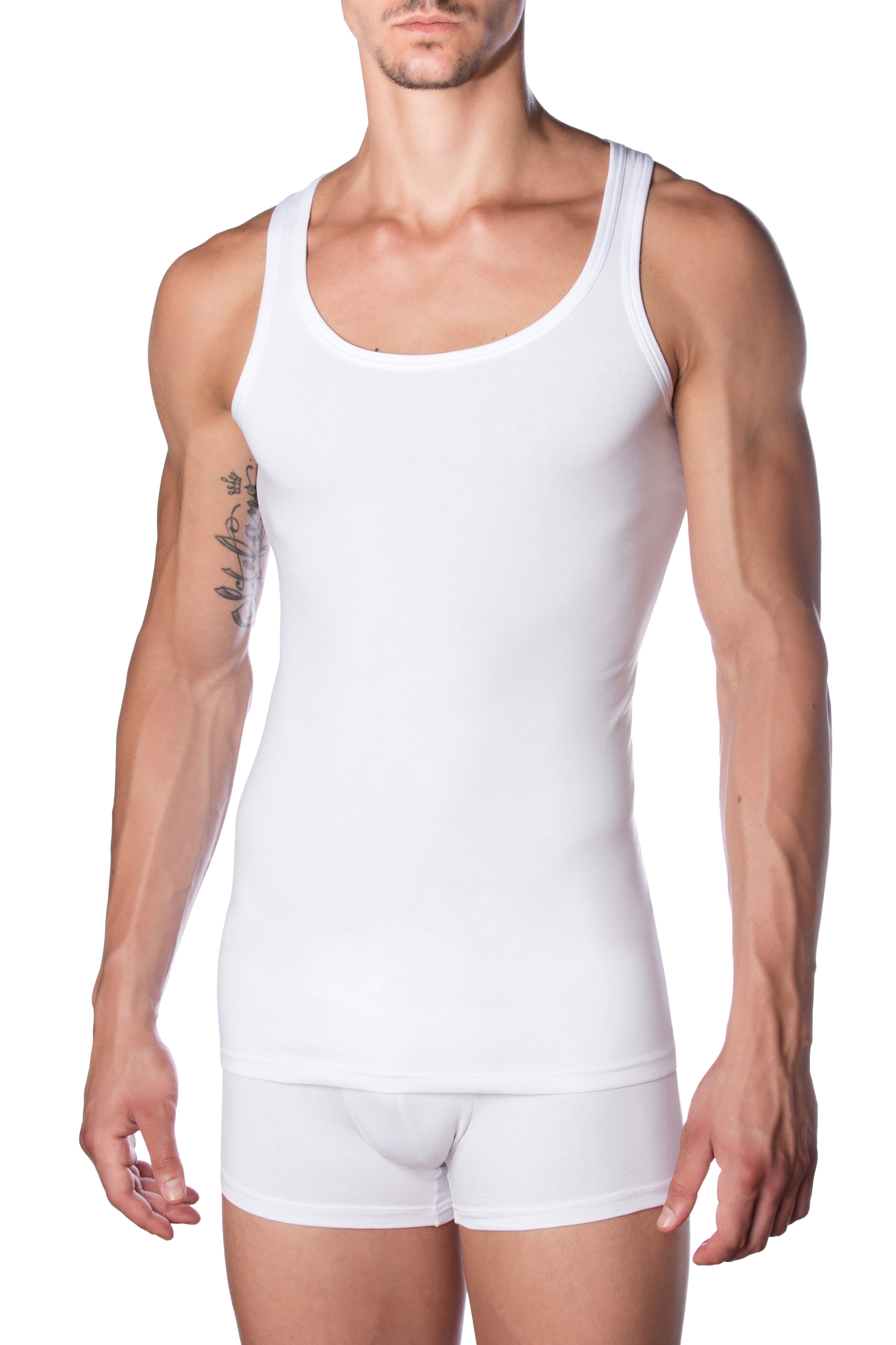 Herrenweste mit schmalen Schultern aus bi-elastischer Baumwolle (90% Baumwolle, 10% Elastan), weiß und farbig. Weich auf der Haut, frisch und leicht. Der Stoff, aus dem dieses Kleidungsstück besteht, hat eine "quadratische" Elastizität, d. h. er ist sowohl horizontal als auch vertikal elastisch. Er folgt daher perfekt allen Bewegungen des Körpers und garantiert einen perfekten Sitz. Zwei-Wege-Stretch-Baumwollstoffe absorbieren Feuchtigkeit, sind fließend und nicht verformbar, atmungsaktiv und absolut weich. Der Stoff wird einer speziellen Anti-Knitter-Behandlung unterzogen, die für kompromisslosen Komfort sorgt. Dank der natürlichen Eigenschaften der Baumwolle wird ein Großteil der vom Körper produzierten Feuchtigkeit direkt aufgenommen, was zu einem spürbaren Frischegefühl beiträgt. Die Färbe- und Veredelungsverfahren werden in Italien unter strengen Kontrollen und mit sicheren und zertifizierten Substanzen durchgeführt. Bi-elastisches Baumwoll-Tank-Top für Männer 90% Baumwolle 10% Elastan Maschinenwäsche 40 Grad