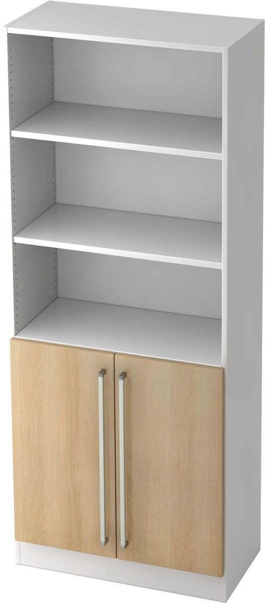 Aktenregal Regal 5 OH 80x42x200,4cm 2 Türen unten Sockelblende Griff CE Weiß/Eich
