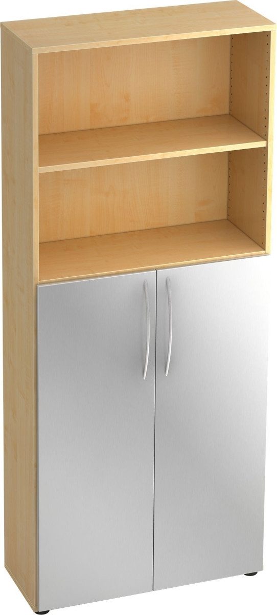 Aktenregal Regal 5 OH BxTxH 80x33x188cm Türen unten Griff BM Ahorn/Silber