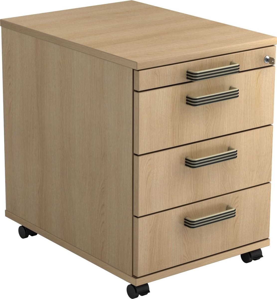 Container Rollcontainer 58cm 3 Schübe Schloss Streifengriff Eiche