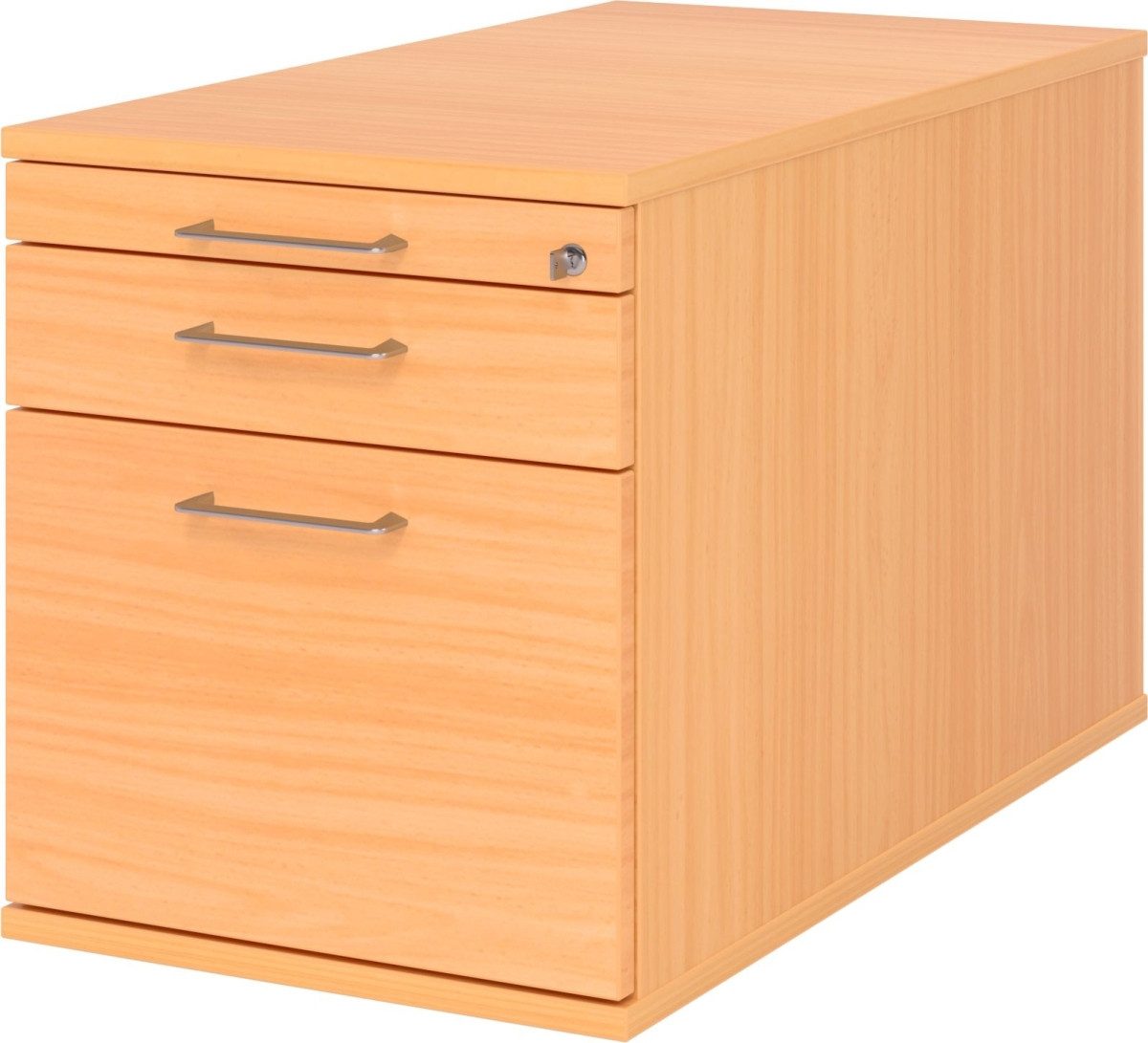 Container Rollcontainer 80cm 1 Schub 1 Hängeregistratur Schloss Bügelgriff Buche