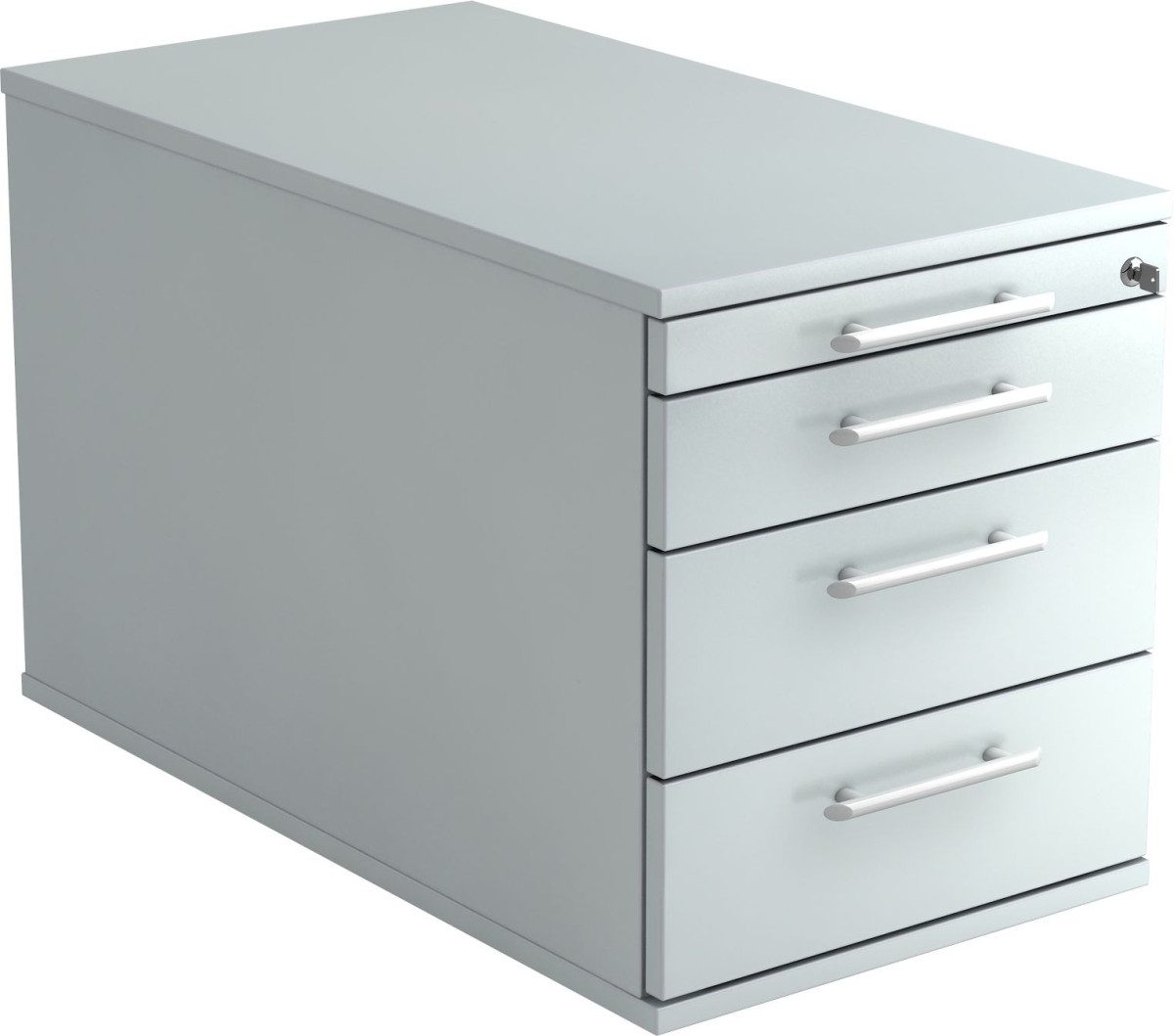 Container Rollcontainer 80cm 3 Schub Schloss Relinggriff Grau