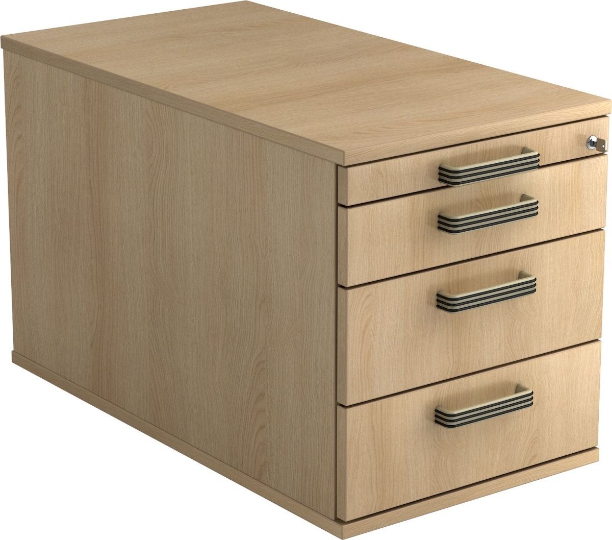 Container Rollcontainer 80cm 3 Schub Schloss Streifengriff Eiche