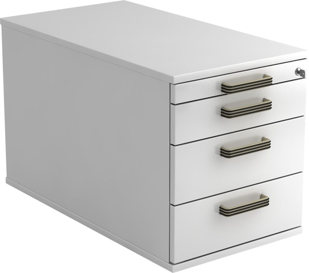 Container Rollcontainer 80cm 3 Schub Schloss Streifengriff Weiß