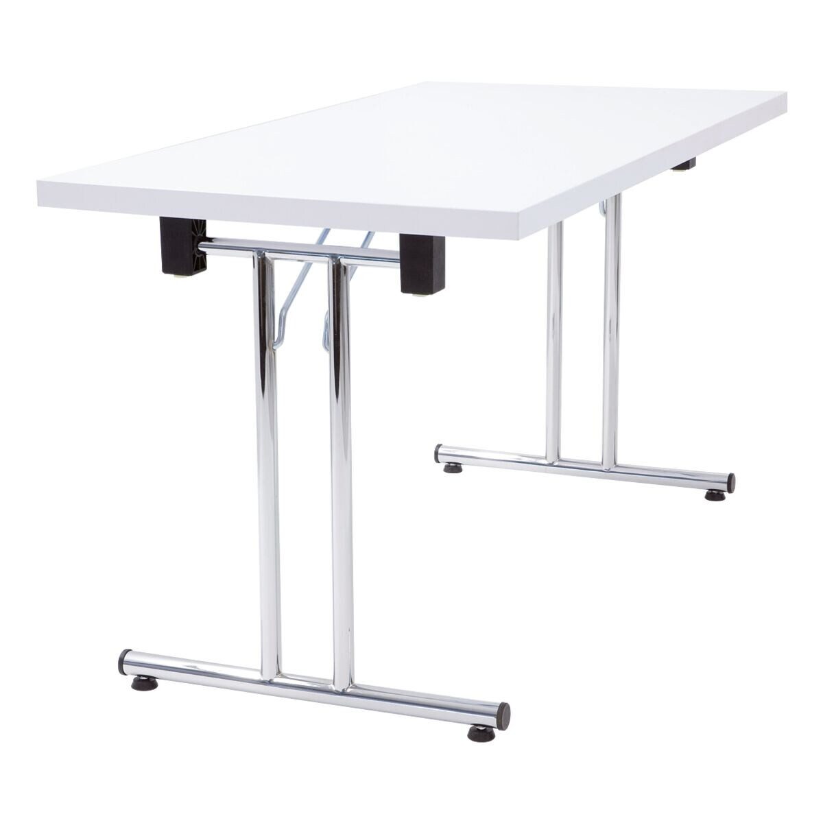 Klapptisch »KL14« 138x69 cm, Ausführung: mit Rundrohr-Fußgestell aus verchromten Stahl, melaminharzbeschichtet, Plattenstärke: 38 mm, 2 mm ABS-Kanten, leicht bedienbare Klappmechanik, Stapelklötze mit Gummiauflage