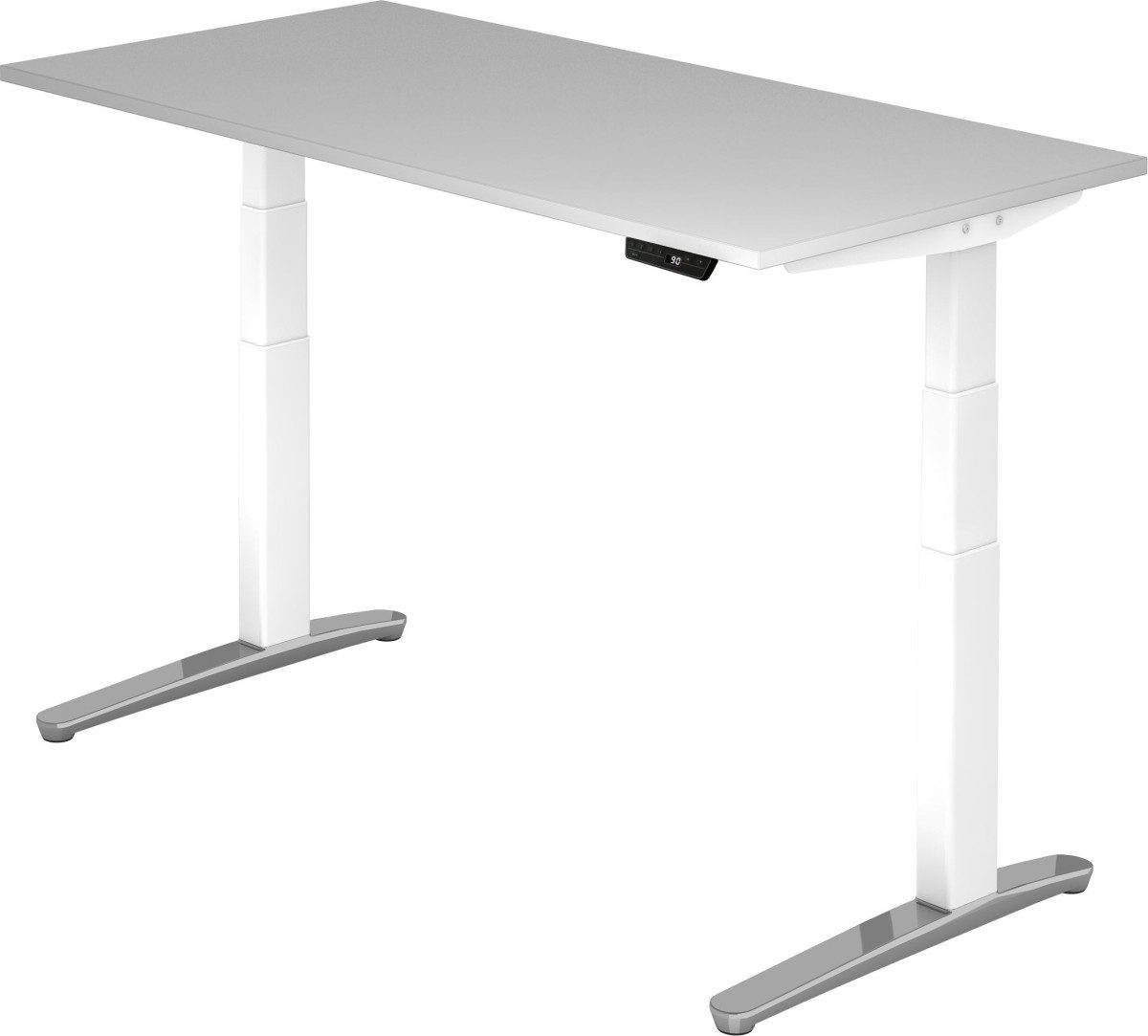HAMMERBACHER Schreibtisch Sitz-Steh-Schreibtisch elektrisch 160x80cm Grau/Weiß-alu