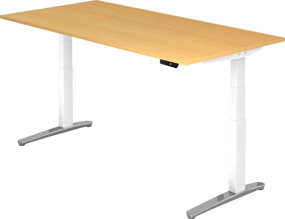 HAMMERBACHER Schreibtisch Sitz-Steh-Schreibtisch elektrisch 200x100cm Buche/Weiß-alu