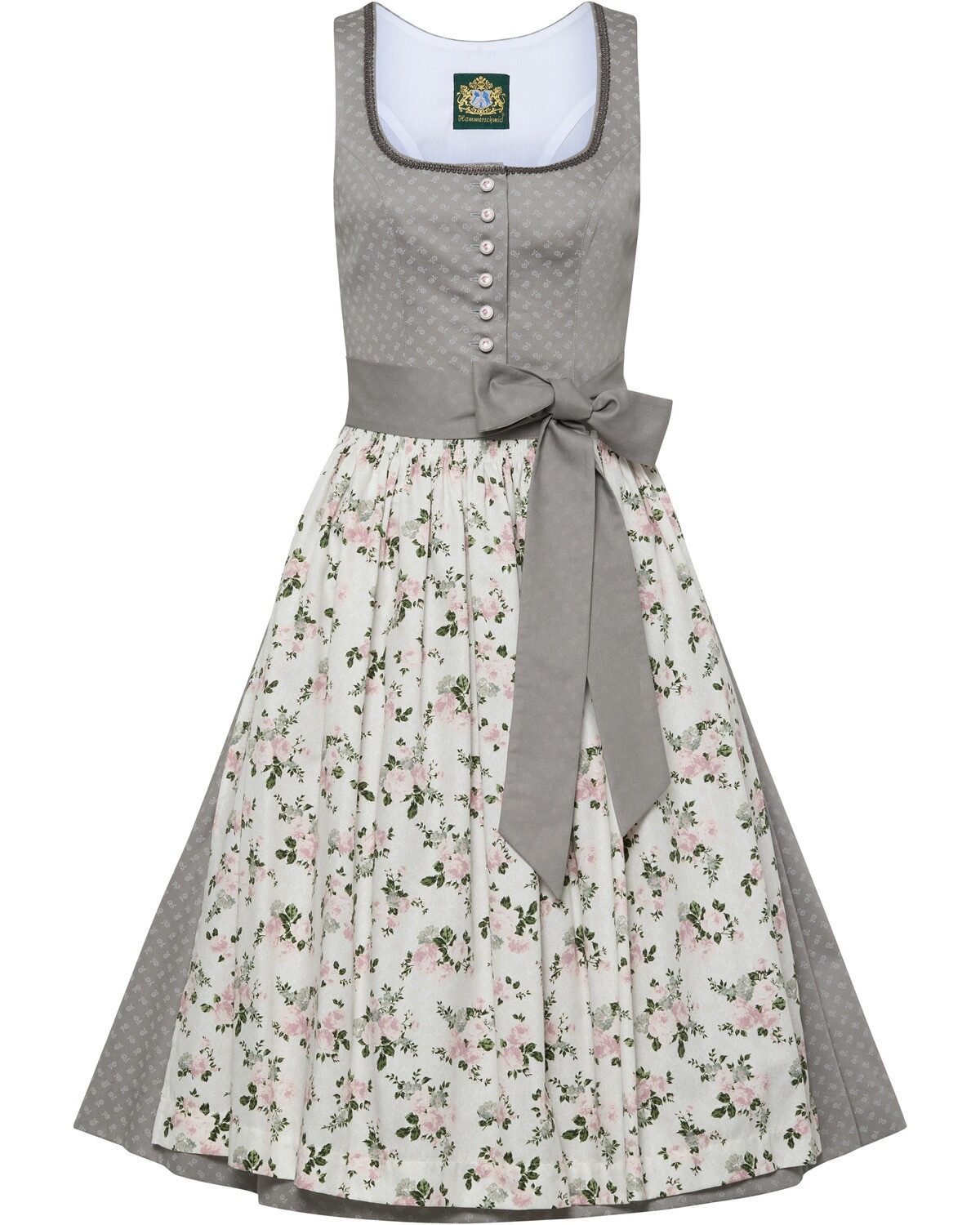 Das Midi Dirndl Koflersee von Hammerschmid vereint traditionelle Eleganz mit modernem Stil. Das Mieder und der Rock bestehen aus hochwertiger Baumwolle, die nicht nur für einen angenehmen Tragekomfort sorgt, sondern auch durch ihr dezentes Muster besticht. Die Knopfleiste in der vorderen Mitte und der schlichte Balkonett-Ausschnitt mit einer feinen Kontrastbordüre verleihen dem Dirndl eine ansprechende Note und betonen die feminine Silhouette. Die dazugehörige Baumwollschürze ist ein echtes Highlight, da sie mit einem floralen Muster verziert ist und durch das abgesetzte Bindeband die Taille gekonnt in Szene setzt. Dieses harmonische Zusammenspiel von Farben und Mustern schafft einen frischen und modernen Look, der sowohl bei festlichen Anlässen als auch im Alltag getragen werden kann. Praktische Details wie der gefaltete Rock und zwei integrierte Rocktaschen machen das Midi Dirndl nicht nur stilvoll, sondern auch funktional. Ob beim Besuch eines Volksfestes oder bei einem gemütlichen Treffen mit Freunden, dieses Dirndl sorgt für einen unvergesslichen Auftritt und lässt sich vielseitig kombinieren. Oberstoff: 100% Baumwolle