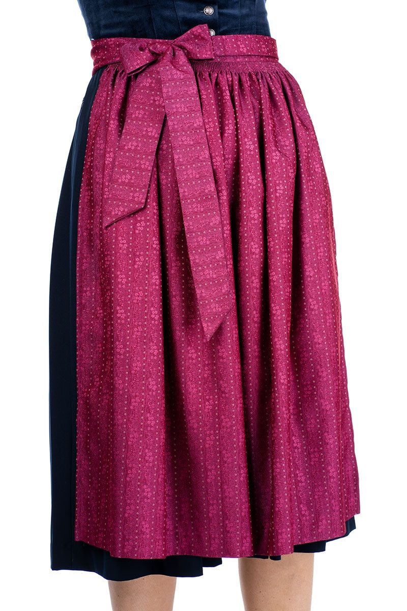 Diese wadenlange Dirndlschürze überzeugt mit einem feinen Streifenmuster und zarten Blümchenranken im Allover-Design. Der leicht geraffte Bund sorgt für einen eleganten Faltenwurf, während das dekorative Bindeband die Taille mit einer schönen Schleife betont. Erhältlich in Blau, Petrol oder Beere, lässt sich die Schürze vielseitig kombinieren. Lieferung ohne Dirndl.