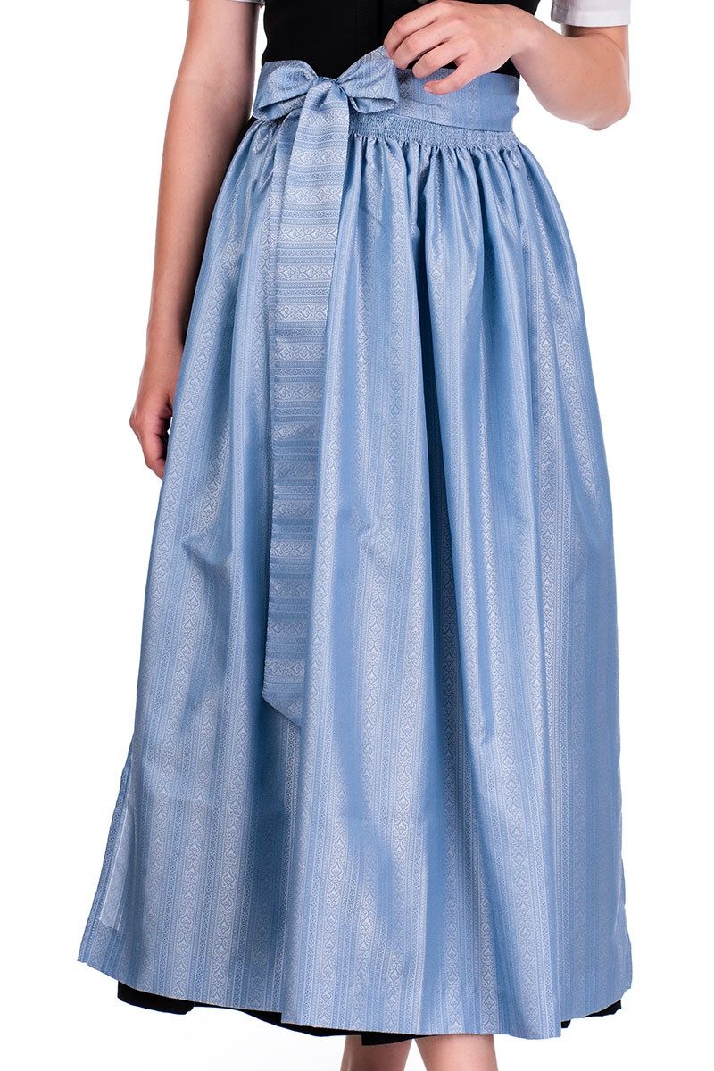 Die schimmernde Dirndlschürze "Wallersee" besticht durch ihren edel glänzenden Jacquard-Look. Ein Schürzenbindeband ermöglicht das Binden einer schicken Schleife. Der Bund ist liebevoll gehanselt, was für einen hübschen Faltenwurf sorgt. Das zarte Streifen-Webmuster besteht aus floralen Ornamenten, Rauten und Linien. Die Motive in Silberweiß heben sich elegant auf einem Untergrund in Beige oder Himmelblau ab. Diese Dirndlschürze lässt sich grandios kombinieren. Im Lieferumfang ist nur die Dirndlschürze enthalten; ein Dirndl sowie eine weitere Dirndlschürze sind nicht inbegriffen.