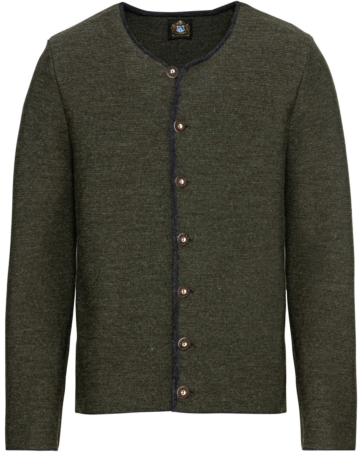 Klassische Strickjacke Simon von Hammerschmid in Links-Links-Strickoptik. Die Jacke besticht mit ihrem weichen Material aus reiner Schurwolle sowie den abgesetzten Kanten und Rundhalsausschnitt. Die Knöpfe in Hirschhornoptik runden das traditionelle Design ab. Oberstoff: 100% Schurwolle. Damit Sie lange Freude an Ihrem Kleidungsstück haben, folgen hier Tipps zur Pflege: - vor dem Waschen stets das Pflegeetikett beachten - vor dem Waschen sämtliche Häkchen, Druckknöpfe usw. schließen - die Maschine darf nicht zu stark befüllt werden - Kleidungsstück auf links drehen - das Kleidungsstück im Hand oder Wollprogramm waschen - ausschließlich Wollwaschmittel verwenden - so verhindern Sie Knötchenbildung und Verfilzung - nach dem Waschen auf einem Frotteehandtuch ausbreiten und liegend trocknen - nicht wringen oder kneten, da das Kleidungsstück sonst einlaufen oder verfilzen kann - bei manueller Handwäsche kaltes Wasser verwenden, da auch hier die Gefahr besteht, dass das Kleidungsstück einlaufen oder verfilzen kann - Pilling ist ein natürlicher Effekt und ein Qualitätsmerkmal von reiner Schurwolle. Pillingknötchen lassen sich bei reiner Schurwolle leicht mit einem ''Fusselrasierer'' entfernen. . Dieser Artikel enthält nichttextile Teile tierischen Ursprungs.