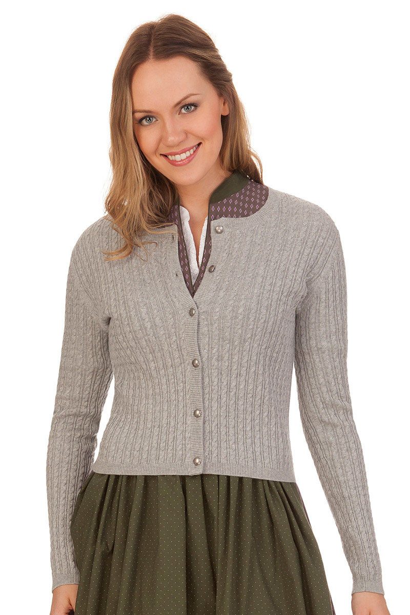 Die niedliche Trachten Strickjacke Reit mit dem zarten Zopfstrick-Muster ist ein vielseitiger Trachtenbegleiter. Rundhalskragen, Bündchen und Bund sind mit dezentem Rippenstrick akzentuiert. Traditionelle, hübsche Münzknöpfe aus altsilber-farbenem Metall zieren die Knopfleiste an der leicht tailliert geschnittenen Jacke. Die kuschelige Qualität und der tolle Tragekomfort machen den zeitlos-modischen Dirndl-Begleiter in toller Markenqualität von Hammerschmid aus. Sie passt auch super zu Jeans und Lederhose.