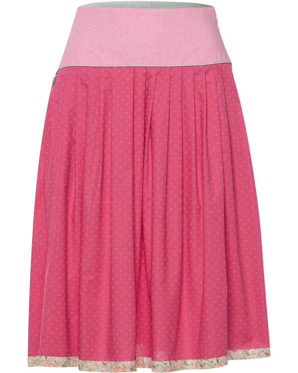 Der Trachtenrock Passau von Hammerschmid vereint traditionelle Eleganz mit modernem Flair. Das exquisite Design wird durch einen zarten Blümchenprint geprägt, der eine frische und lebendige Note verleiht. Der kontrastierende Bund setzt einen stilvollen Akzent und sorgt für einen ansprechenden Blickfang. Besondere Details wie der Kontrasteinsatz mit floralen Mustern am Saum verleihen dem Rock eine charmante Ausstrahlung. Die geschickt platzierten Falten rund um den Rock sorgen nicht nur für eine feminine Silhouette, sondern auch für eine angenehme Bewegungsfreiheit. Praktische Schubtaschen bieten zudem ausreichend Platz für kleine Utensilien und machen den Rock alltagstauglich. Ein Reißverschluss in der Seitennaht rundet das durchdachte Design ab und garantiert eine bequeme Passform. Der Trachtenrock eignet sich hervorragend für festliche Anlässe sowie für den Alltag und lässt sich vielseitig kombinieren. Mit diesem Stück wird jede Garderobe um ein modisches Highlight bereichert. Oberstoff: 100% Baumwolle