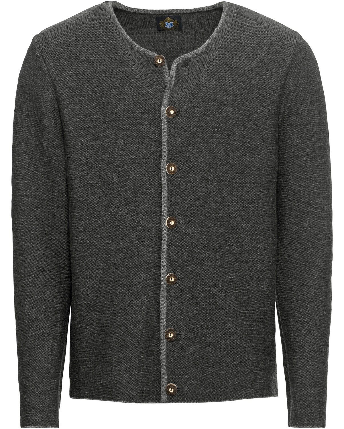 Klassische Strickjacke Simon von Hammerschmid in Links-Links-Strickoptik. Die Jacke besticht mit ihrem weichen Material aus reiner Schurwolle sowie den abgesetzten Kanten und Rundhalsausschnitt. Die Knöpfe in Hirschhornoptik runden das traditionelle Design ab. Oberstoff: 100% Schurwolle. Damit Sie lange Freude an Ihrem Kleidungsstück haben, folgen hier Tipps zur Pflege: - vor dem Waschen stets das Pflegeetikett beachten - vor dem Waschen sämtliche Häkchen, Druckknöpfe usw. schließen - die Maschine darf nicht zu stark befüllt werden - Kleidungsstück auf links drehen - das Kleidungsstück im Hand oder Wollprogramm waschen - ausschließlich Wollwaschmittel verwenden - so verhindern Sie Knötchenbildung und Verfilzung - nach dem Waschen auf einem Frotteehandtuch ausbreiten und liegend trocknen - nicht wringen oder kneten, da das Kleidungsstück sonst einlaufen oder verfilzen kann - bei manueller Handwäsche kaltes Wasser verwenden, da auch hier die Gefahr besteht, dass das Kleidungsstück einlaufen oder verfilzen kann - Pilling ist ein natürlicher Effekt und ein Qualitätsmerkmal von reiner Schurwolle. Pillingknötchen lassen sich bei reiner Schurwolle leicht mit einem ''Fusselrasierer'' entfernen. . Dieser Artikel enthält nichttextile Teile tierischen Ursprungs.