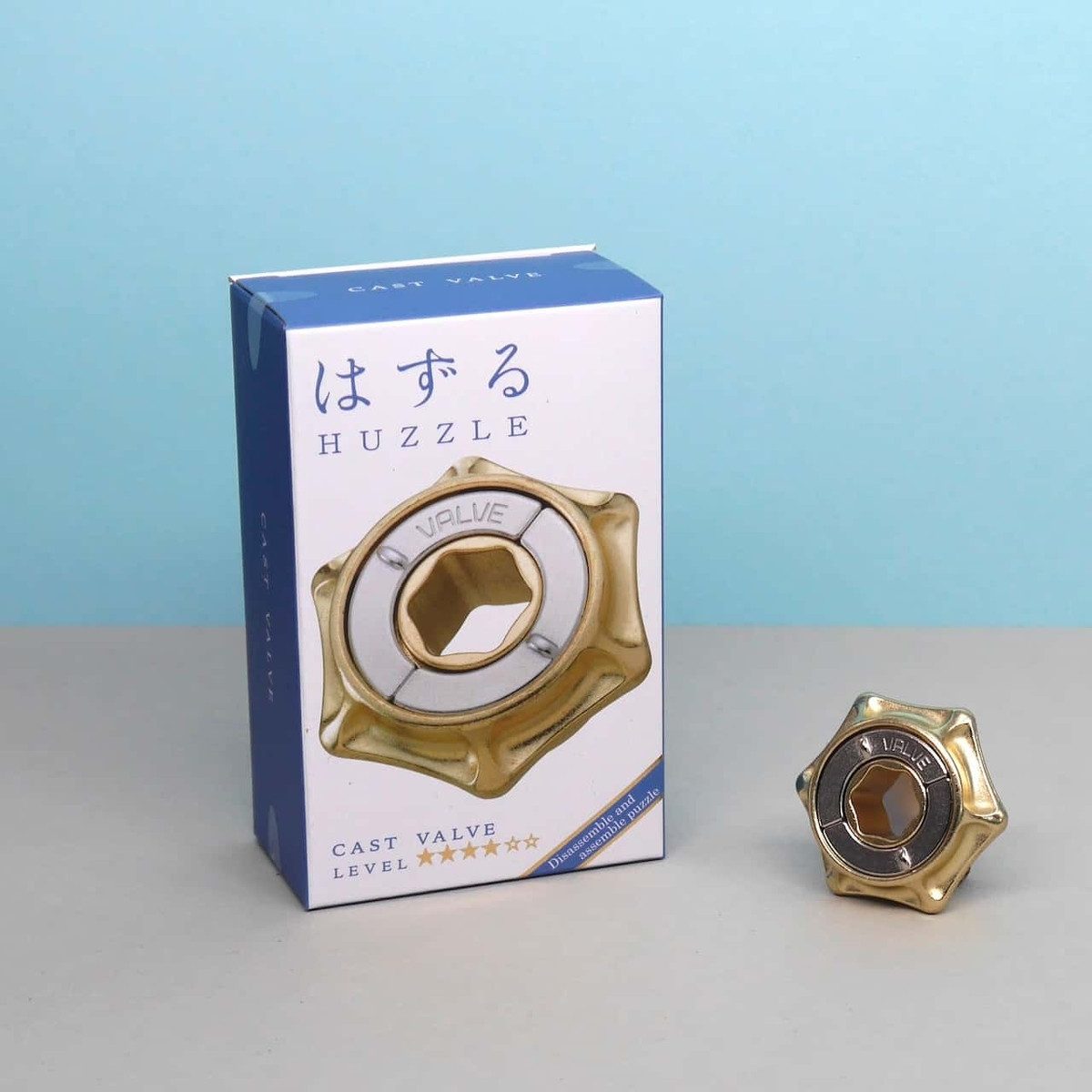 Das HUZZLE CAST VALVE von Hanayama ist ein raffiniertes Metallpuzzle mit anspruchsvoller Mechanik. Die Teile zu trennen und wieder zusammenzusetzen erfordert Logik und Geduld!