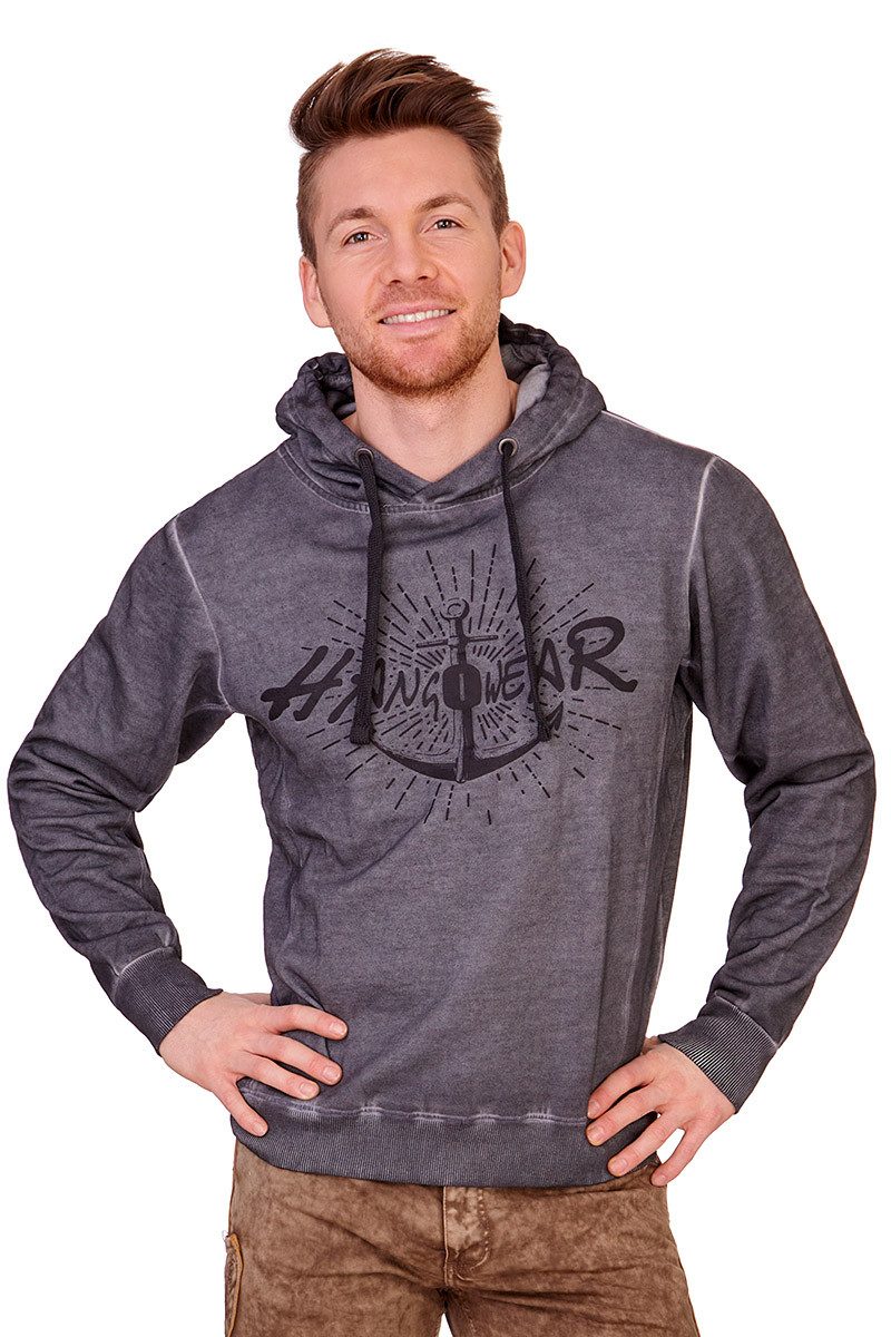 Dieser stylische, lässig geschnittene Herren Sweat-Kapuzenpullover Nordmänner in Dunkelgrau besteht aus reiner Baumwolle im Oil-Washed-Style und ist innen kuschelig angeraut. Der Sweatpulli ohne Tasche ist sowohl vorn als auch hinten seitlich sowie an den Ärmeln mit krachigen Ziernähten gestaltet. Die Kapuze mit Jersey-Futter verfügt über ein Flachkordel-Zugband in Schwarz und die breiten Bündchen der langen Ärmel und der Saum sind elastisch gerippt. Die Highlights sind der gedruckte Markenname und der große Anker-Print, verziert im Strahlen-Style, auf der Vorderseite und der Schriftzug-Print "Nordmänner" in schöner Schrift sowie ein gedrucktes, reißendes Seil darunter auf der Rückseite. Das urige Design für Seemann-Fans stammt aus dem Hause Hangowear - ein Look maritim für Freunde des Nordens. Bitte beachten Sie den Übergrößenzuschlag bei Размер 4XL. Der Hoodie ist hier im Shop auch in Blau AW-14137 erhältlich.