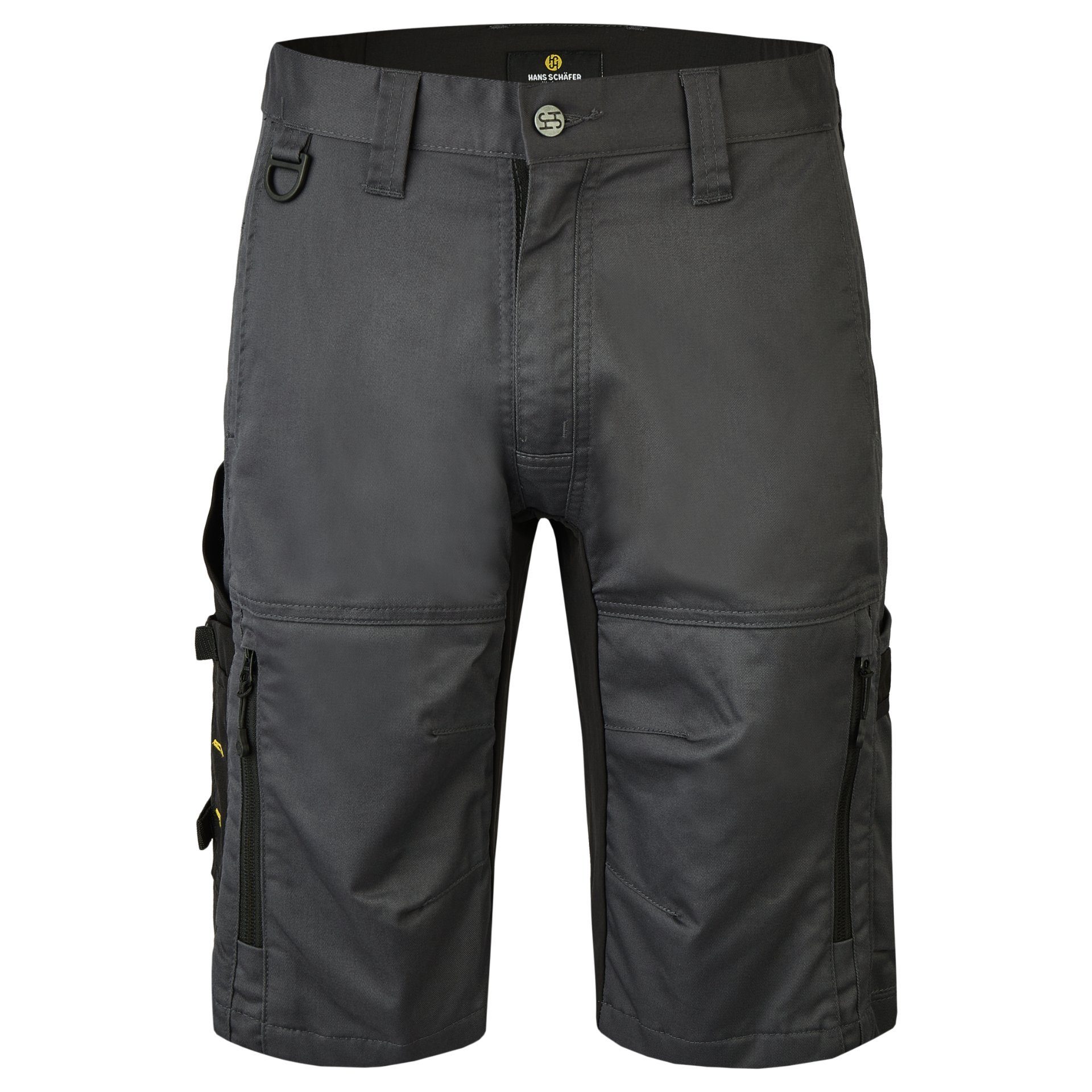 Die perfekte Short für den Handwerker! Die SMART-Short von HANS SCHÄFER WORKWEAR leistet durch Comfort und Funktionalität in perfekter Kombination beste Arbeit – Eben genauso wie Sie. Viel Platz für alle Werkzeuge, die du brauchst Hier kommt die kurze Version einer Arbeitshose, mit der du im Sommer praktisch und gut gekleidet bist – die Arbeitshose Short Apollon. (Diese Hose gibt es ebenfalls in einer langen Варианты) Mit der Arbeitshose Short für Herren bist du perfekt ausgestattet, denn sie verfügt über 12 Taschen. Passend für Zollstock, Handy und alle Werkzeuge, die du griffbereit haben musst. Mehr Stauraum geht nicht. Hinzu kommen eine Schlaufe für den Hammer sowie ein D-Ring. Neben der Funktionalität achten wir auf beste Materialien, die einer hohen Beanspruchung standhalten. Deshalb wurden die Taschen, die stark genutzt werden, mit Cordura ausgestattet. Dieses Gewebe besitzt, im Vergleich zu anderen Faserstoffen, eine sehr hohe Abriebfestigkeit. Das bedeutet, dass der Stoff an den gesteppten Kanten nicht so leicht bricht, wie es bei anderen Stoffen der Fall ist. Damit ist die Langlebigkeit der Arbeitshose Short für Herren garantiert und sie behält auch bei intensivem Gebrauch ihr perfektes Aussehen. Bewegungsfreiheit durch elastische Einsätze Arbeitshosen sollten im Bundbereich nicht einengen. Daher wirst du es zu schätzen wissen, dass der Bund aus elastischen Materialien gefertigt wurde, der dir Bewegungsfreiheit lässt. Strechteinsätze finden sich für eine entsprechende Scheuerfestigkeit und Elastizität auch im Schrittbereich. Besonders an diesen Stellen ist Flexibilität gefragt, die durch den 4-Wege-Stretch-Einsätze gegeben ist. Die hohe Qualität sorgt dafür, dass das Material nach Beanspruchung vollständig in die Ausgangsform zurückgeht und diese Elastizität lange Zeit erhalten bleibt. Angenehme Kühle beim Arbeiten An den Beinen der Arbeitshose Short für Männer wurden Reißverschlüsse integriert, mit deren Hilfe sich der Stoff für eine bessere Durchlüftung öffnen lässt. Die eingearbeitete “Klimaanlage” sorgt im Sommer für ein angenehmes Arbeitsklima, ohne dass du auf den Schutz einer Arbeitshose verzichten musst. Durch die Reißverschlüsse verändert sich auch die Weite des Hosenbeins, während die darunterliegende Stofflage luftdurchlässig ist. Auch Arbeitskleidung sollte aus qualitativ hochwertigen Materialien bestehen, die langlebig sowie funktional sind und jede Bewegung mitmachen. Die kurze Arbeitshose Short Herren erfüllt alle Anforderungen, wenn es um Zweckmäßigkeit und Qualität geht.