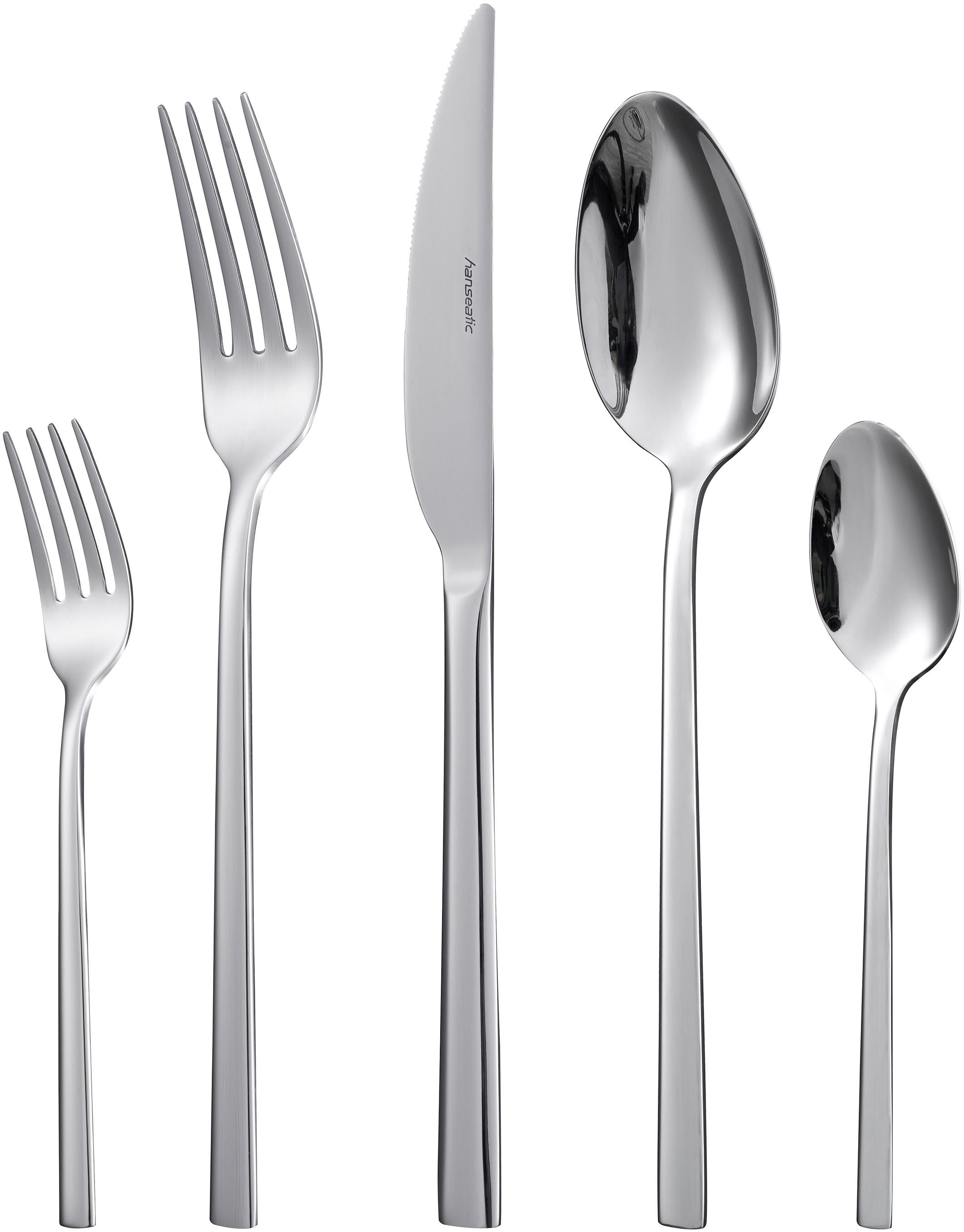 Das Set beinhaltet 6 bzw. 12 Gabeln, Tafelmesser, Löffel, Kuchengabeln, Tee-/Kaffeelöffel - wahlweise mit Fischmesser und Steakmesser