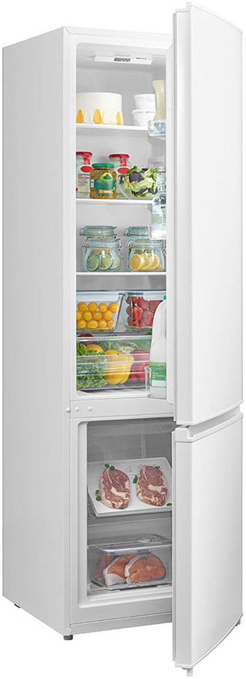 Die »HKGK18055CW« ist eine freistehende Kühl- und Gefrierkombination von Hanseatic und überzeugt mit hoher Funktionalität sowie der Energieeffizienz-Klassifizierung C (Skala Energieeffizienz-Klassifizierung A bis G). Das Gerät bietet ausreichend Platz für deinen Einkauf durch seine Maße von 54,7 x 177,3 x 56,8 cm (B/H/T) und das Gefriervolumen von 65 l und Kühlvolumen von 197 l. Das Modell arbeitet mit einem Betriebsgeräusch von 35 dB. Das Modell besitzt einer Gefrierschublade und eine Gemüseschublade. Auf vier Ablageflächen aus Glas ist in der Kühl- und Gefrierkombination genug Raum für Lebensmittel. Die drei Türablagen ermöglichen eine übersichtliche Aufbewahrung. Besonders schnell kühlen und einfrieren lassen sich Nahrungsmittel durch die Supergefrier-Funktion. Durch die LED-Innenbeleuchtung findet man außerdem immer schnell, wonach man sucht. Für diejenigen, die auf der Suche nach einer Kühl- und Gefrierkombination sind, ist die »HKGK18055CW« von Hanseatic eine gute Wahl.