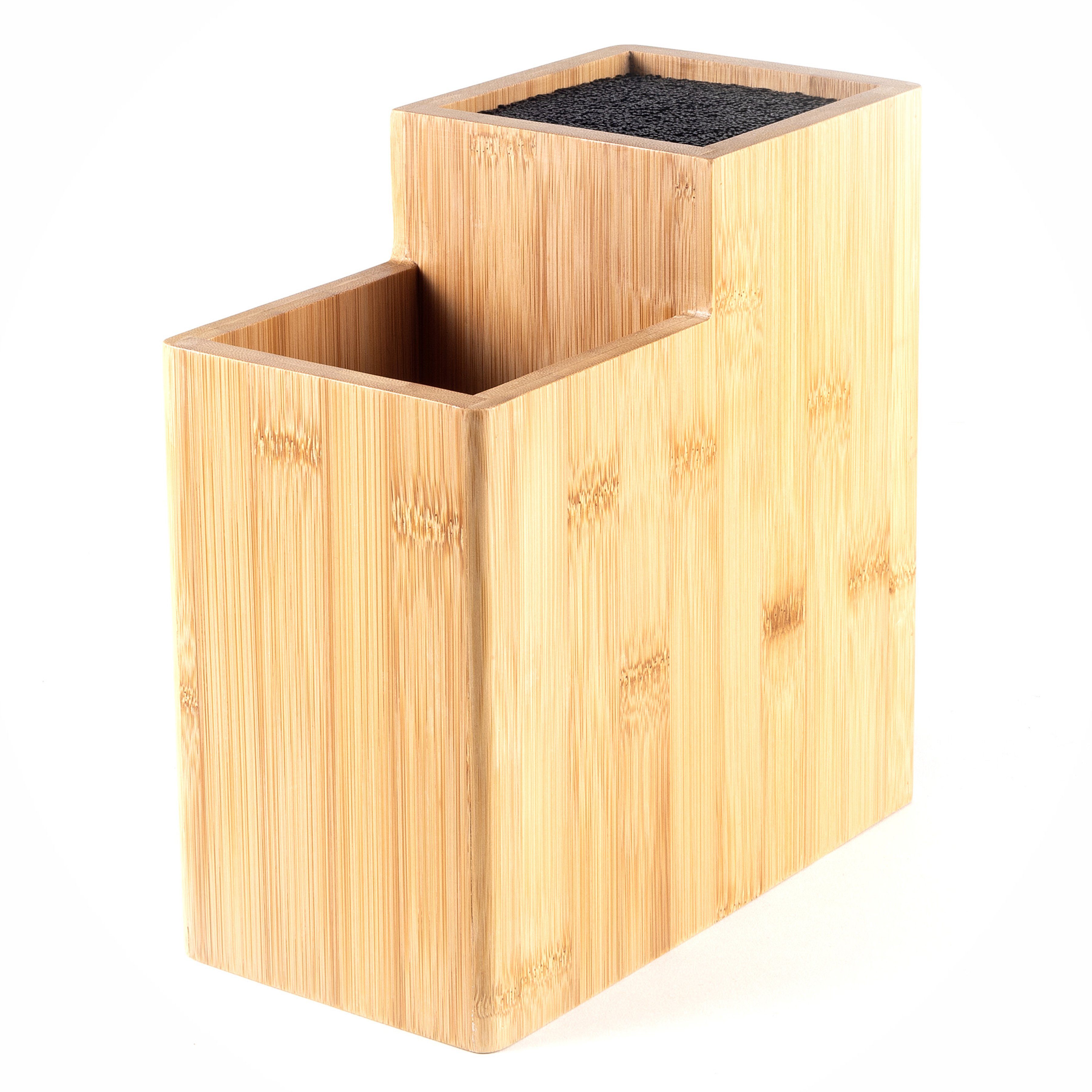 Der Messerblock ohne Messer ist ein vielseitiger Holz Messerhalter und Organizer, der für Ordnung in Ihrer Küche sorgt. Mit seinen 2 Fächern bietet er ausreichend Platz für Küchenmesser, Besteck und Kochutensilien, damit Ihre Arbeitsflächen aufgeräumt bleiben.